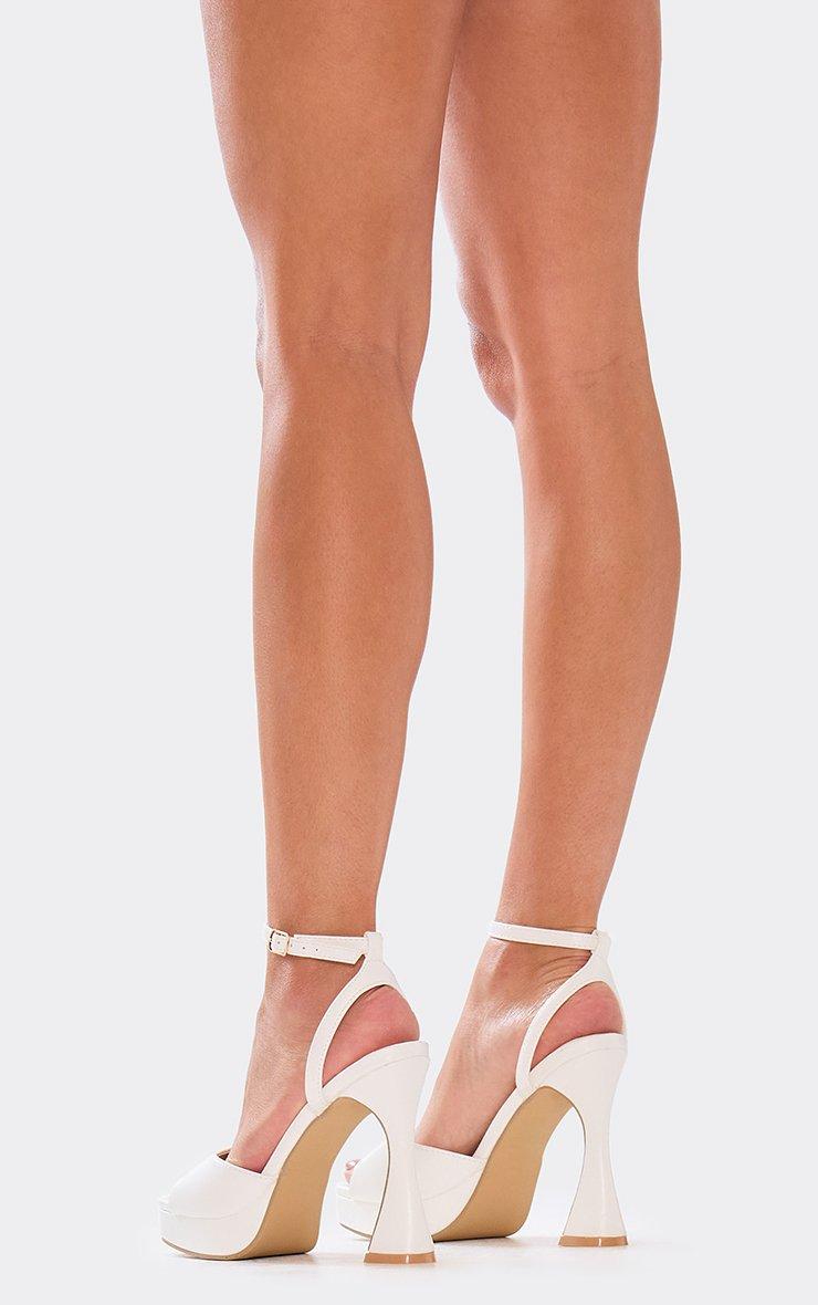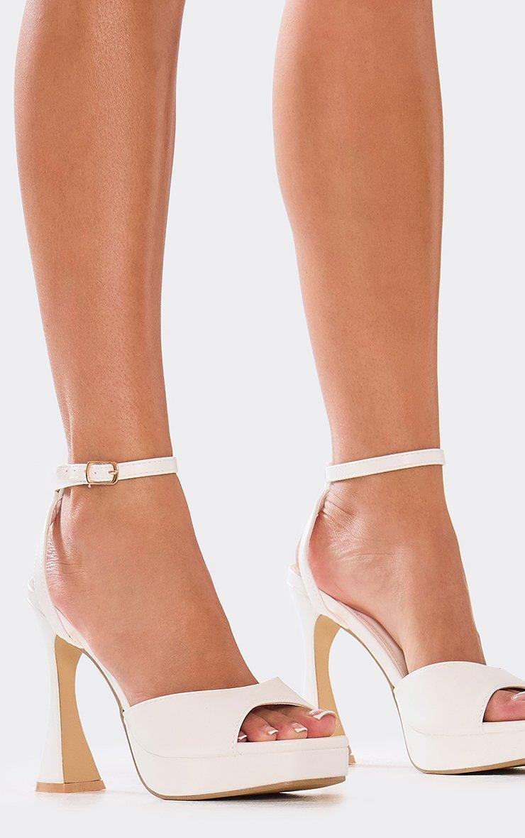 Killare Ankle Strap Platform Flared Block Heel In White Faux Leather