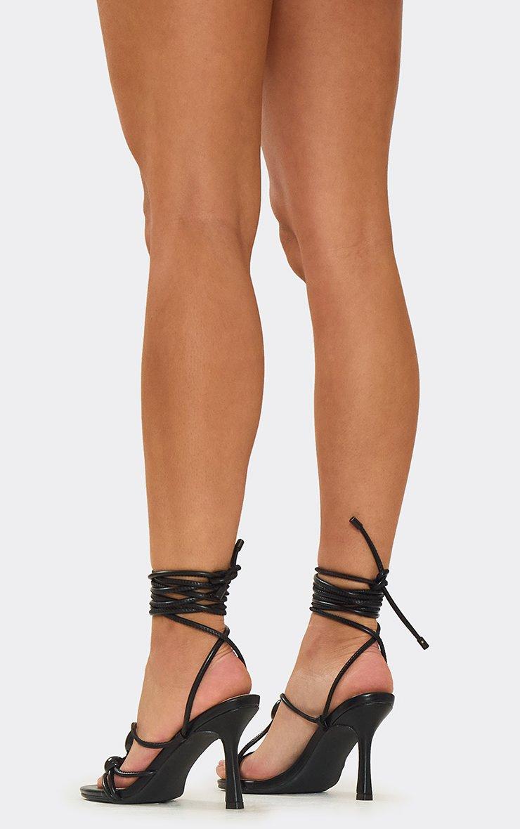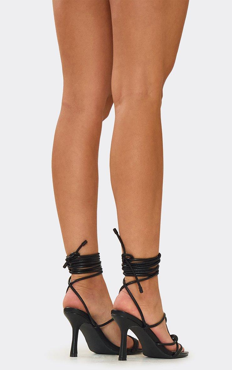 Seer Lace Up Beaded Detail Heel In Black Faux Leather