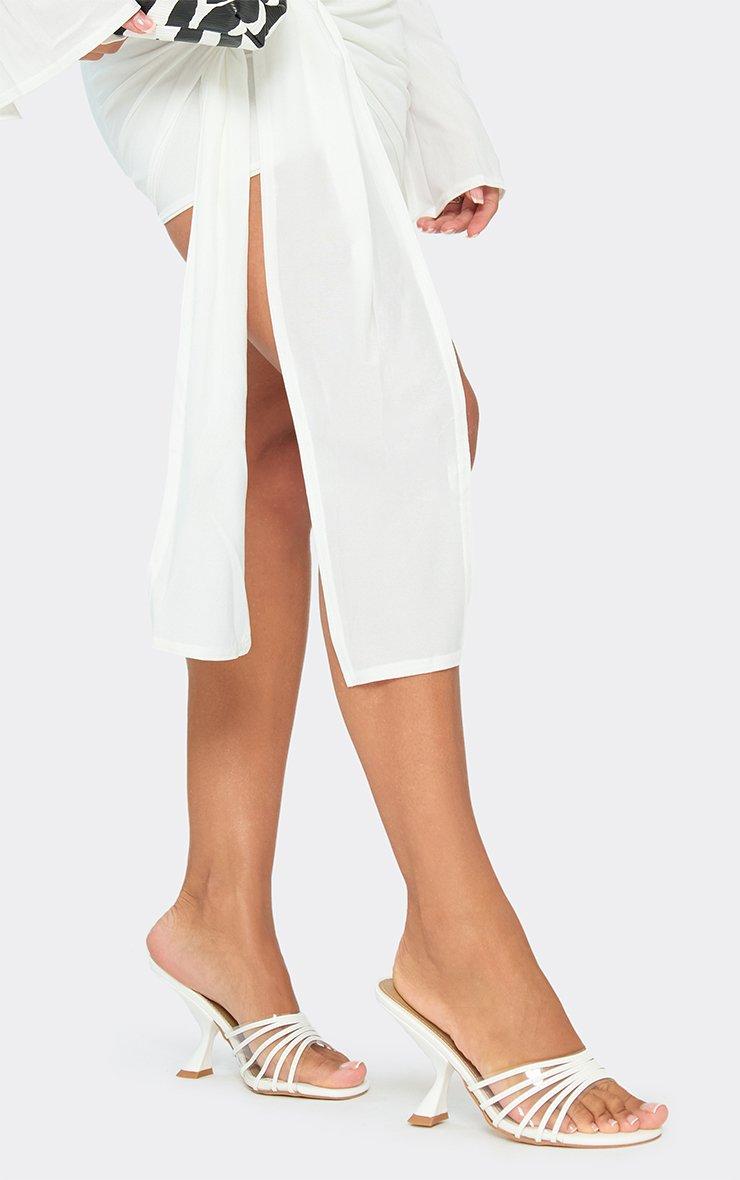 Gelli Double Strap Square Toe Heel Mule In White Faux Leather