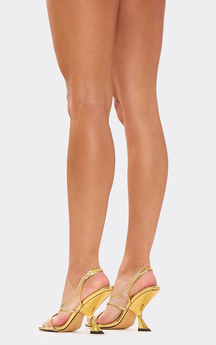 Eve Square Toe Strappy Heel In Gold Faux Leather
