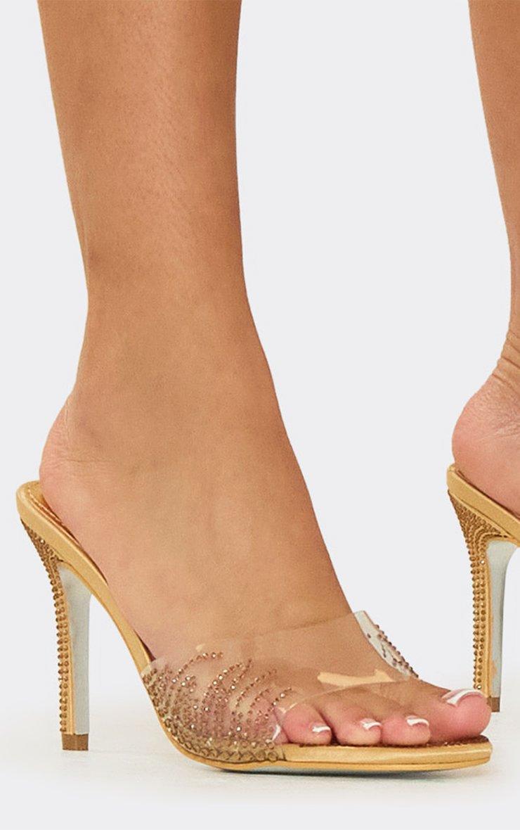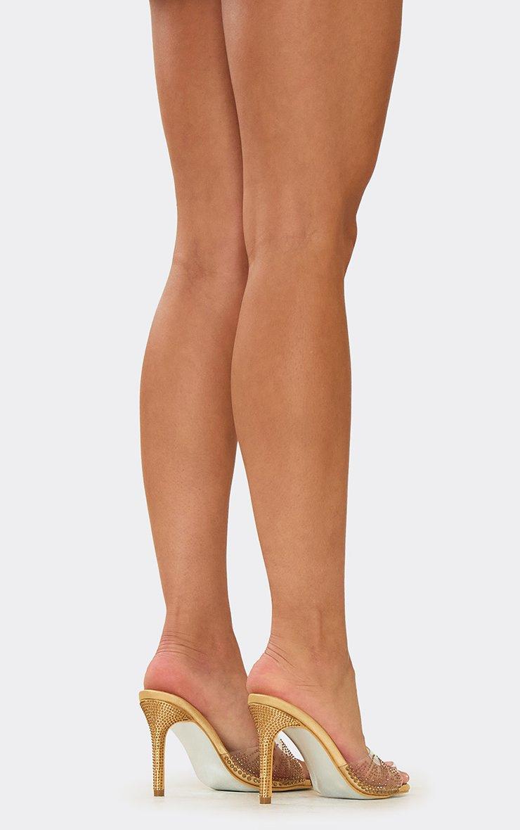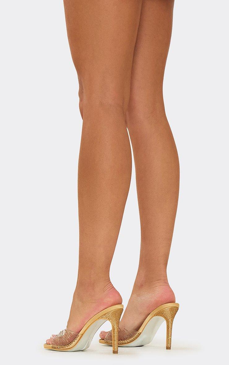 Next-Diva Diamante Clear Perspex Strap Stiletto Heel Mule In Gold Satin
