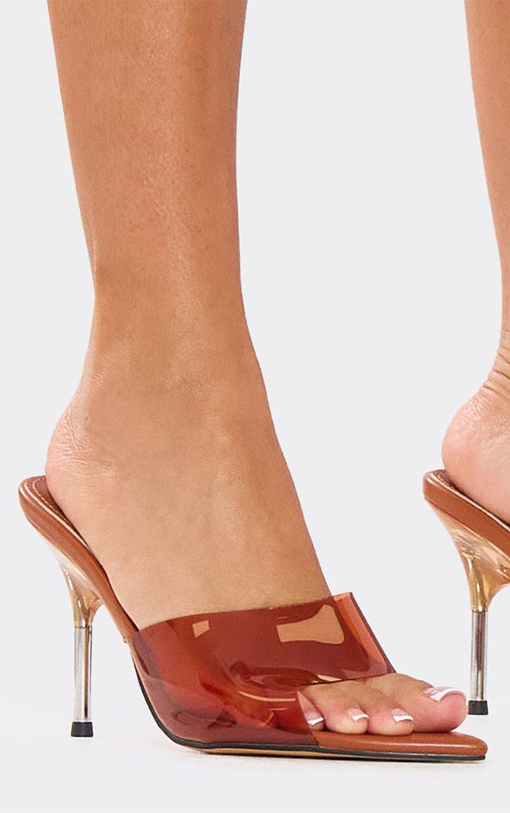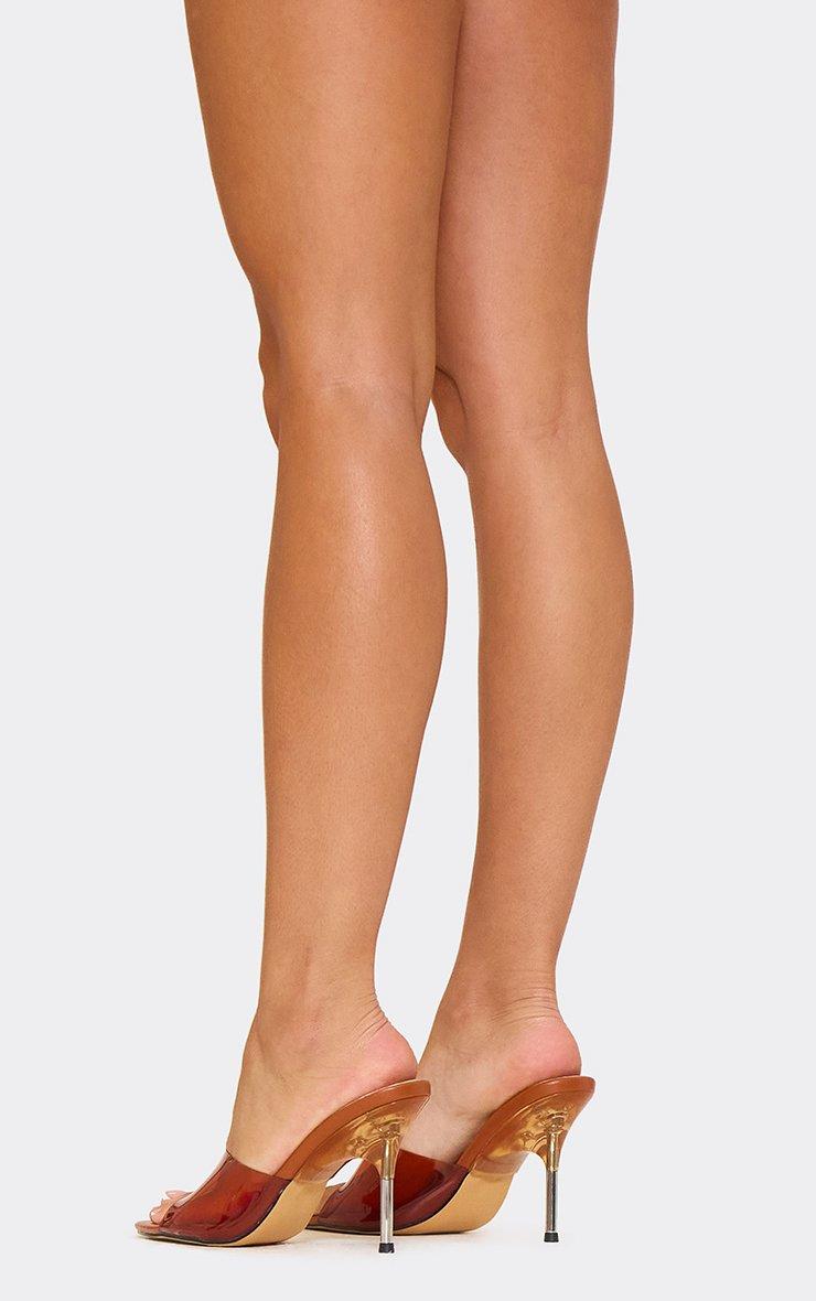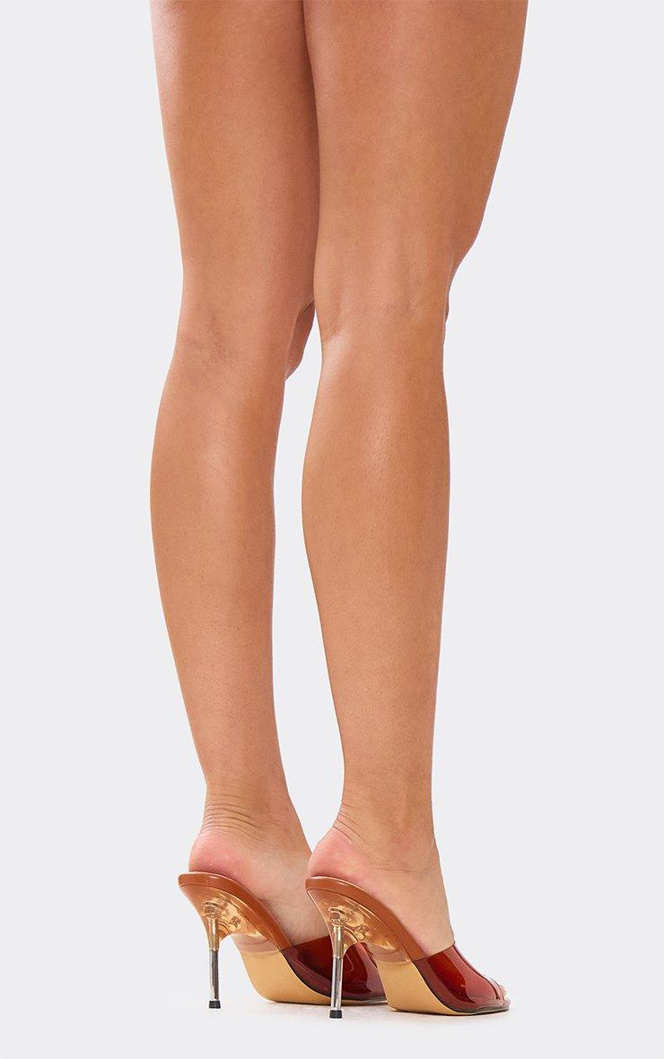 Wicked-Temptation Pointed Peep Toe Stiletto Heel Mule In Brown Perspex