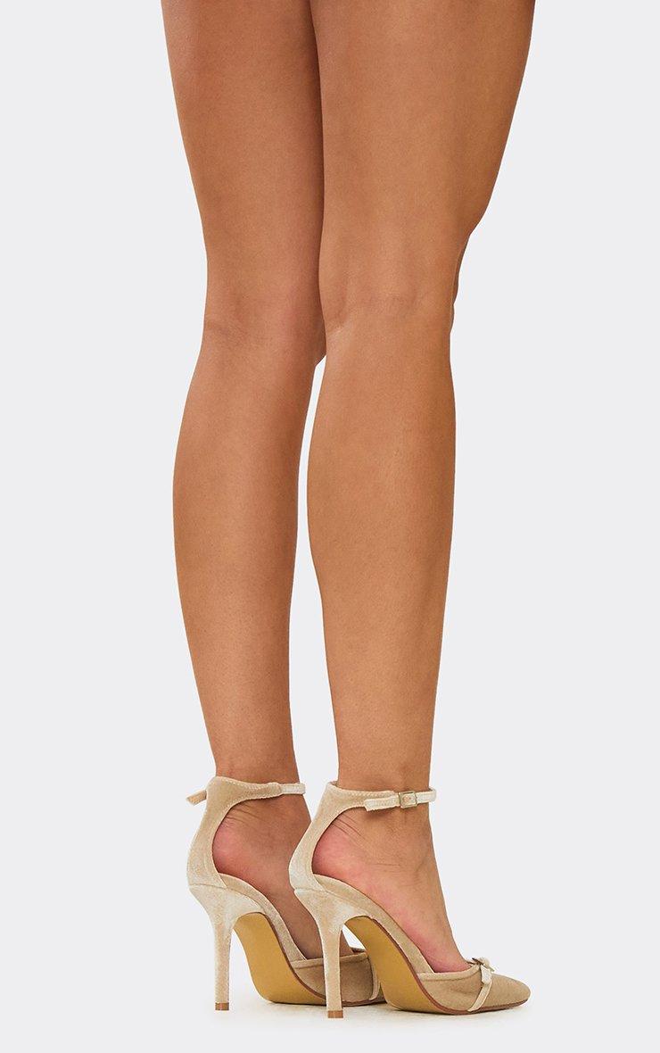 Elias Ankle Strap Buckle Detail Pointed Toe Court Heel In Cream Velvet