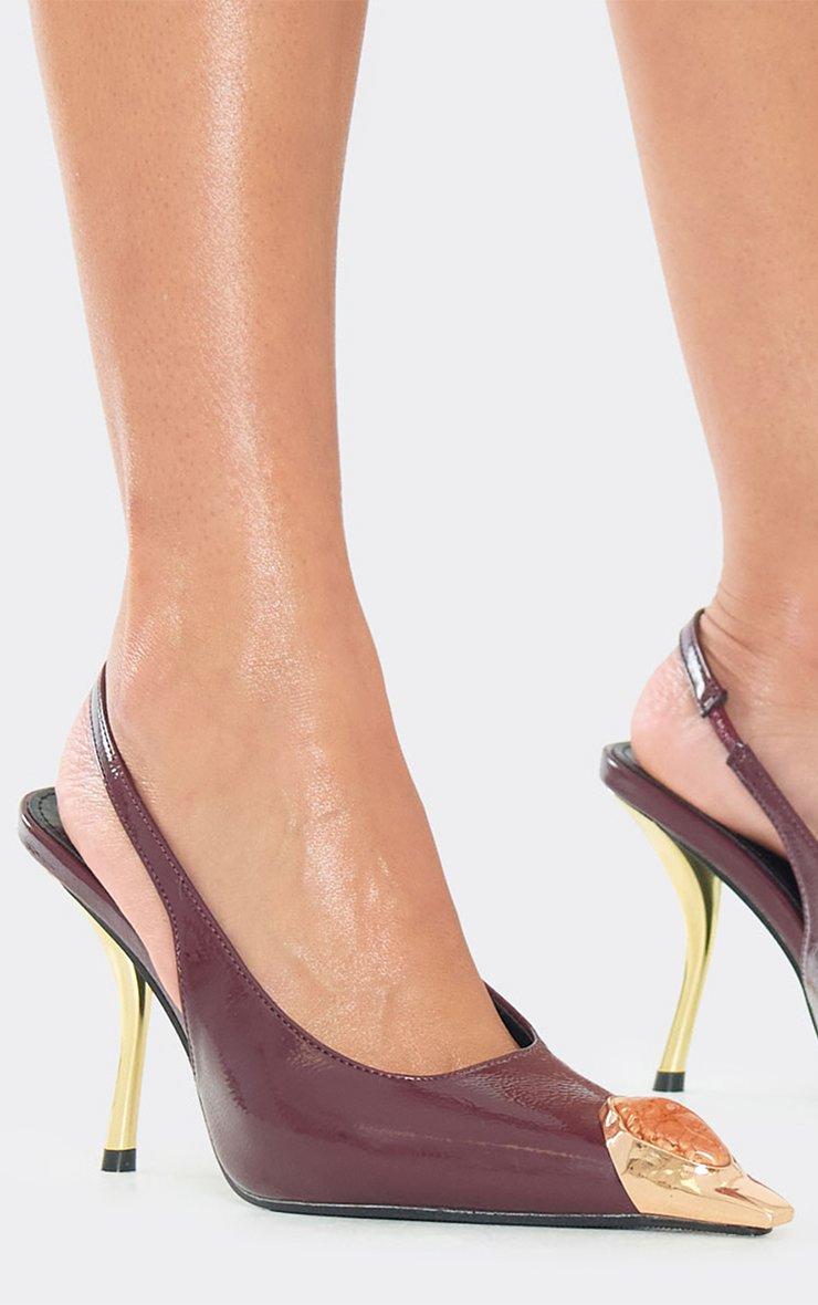 Scorry Pointed Gem Toe Detail Slingback Court Heel In Burgundy Faux Leather
