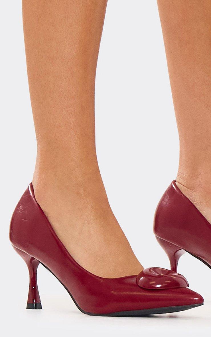 Resort-Town Floral Strappy Detail Stiletto Heel In Burgundy Faux Leather