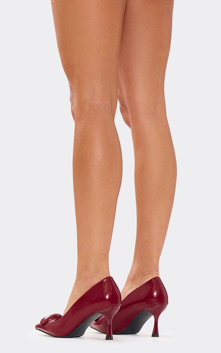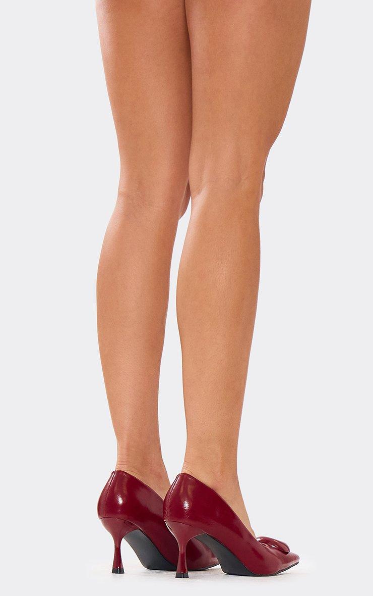 Violet-Game Strappy Detail Square Toe Heel In Burgundy Faux Leather