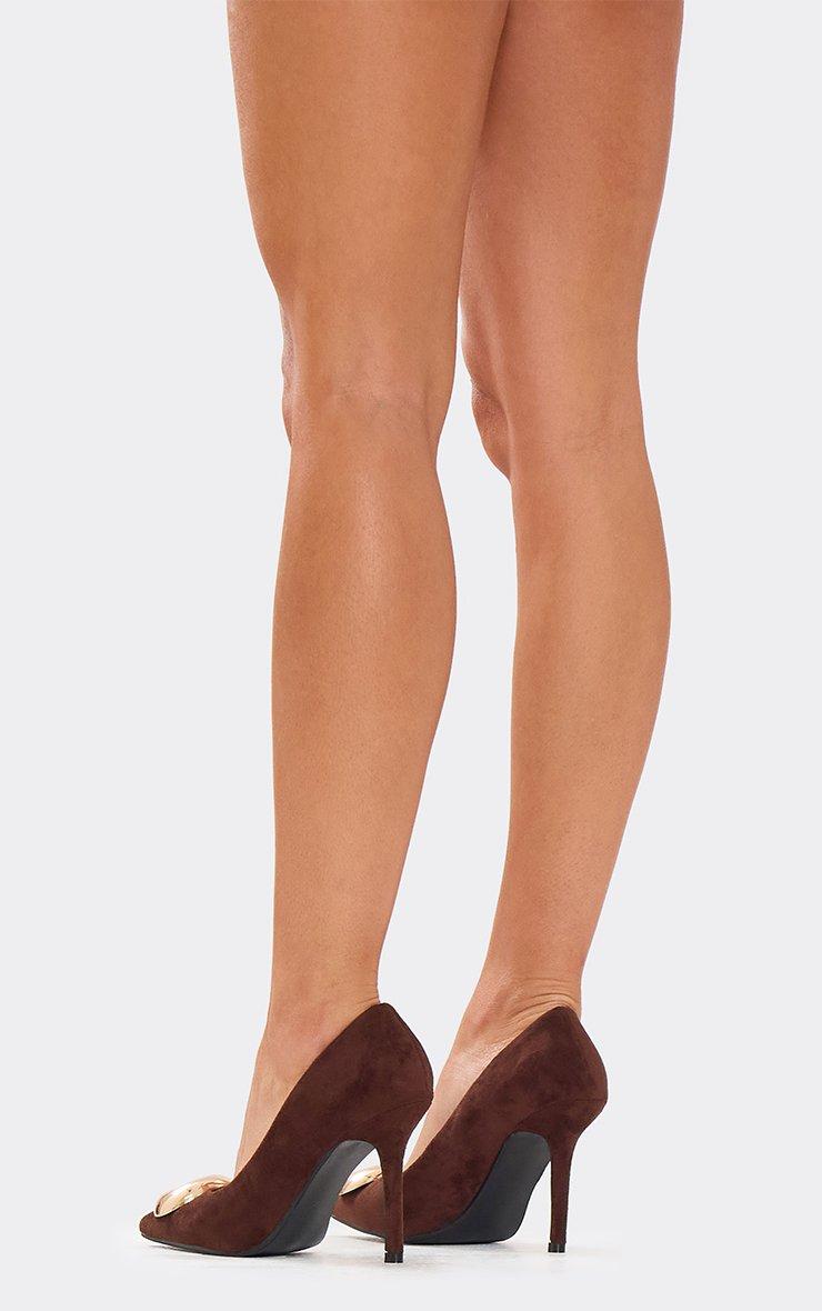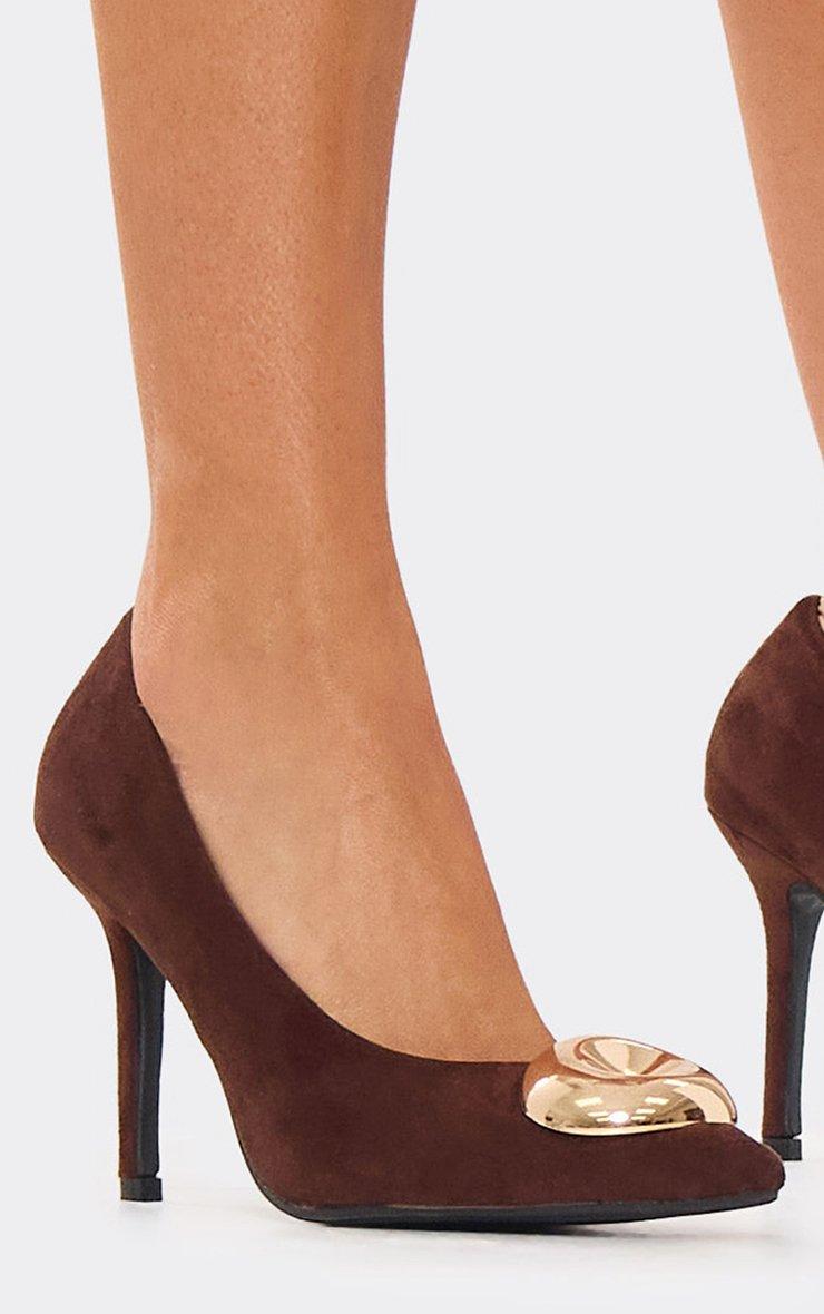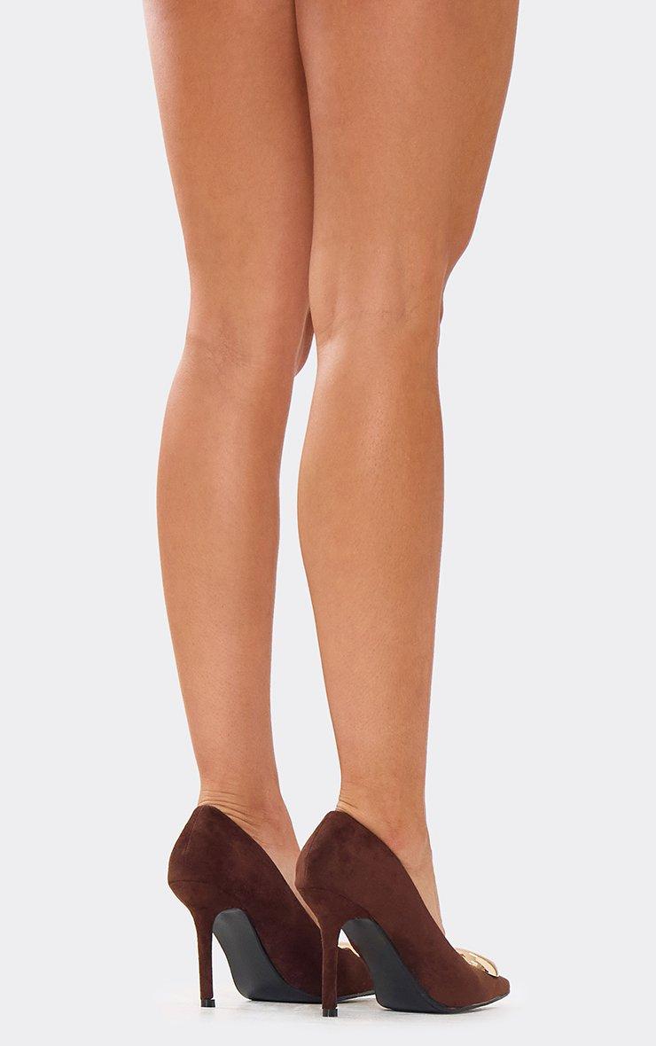 Ale Trim Detail Pointed Toe Court Heel In Brown Faux Suede