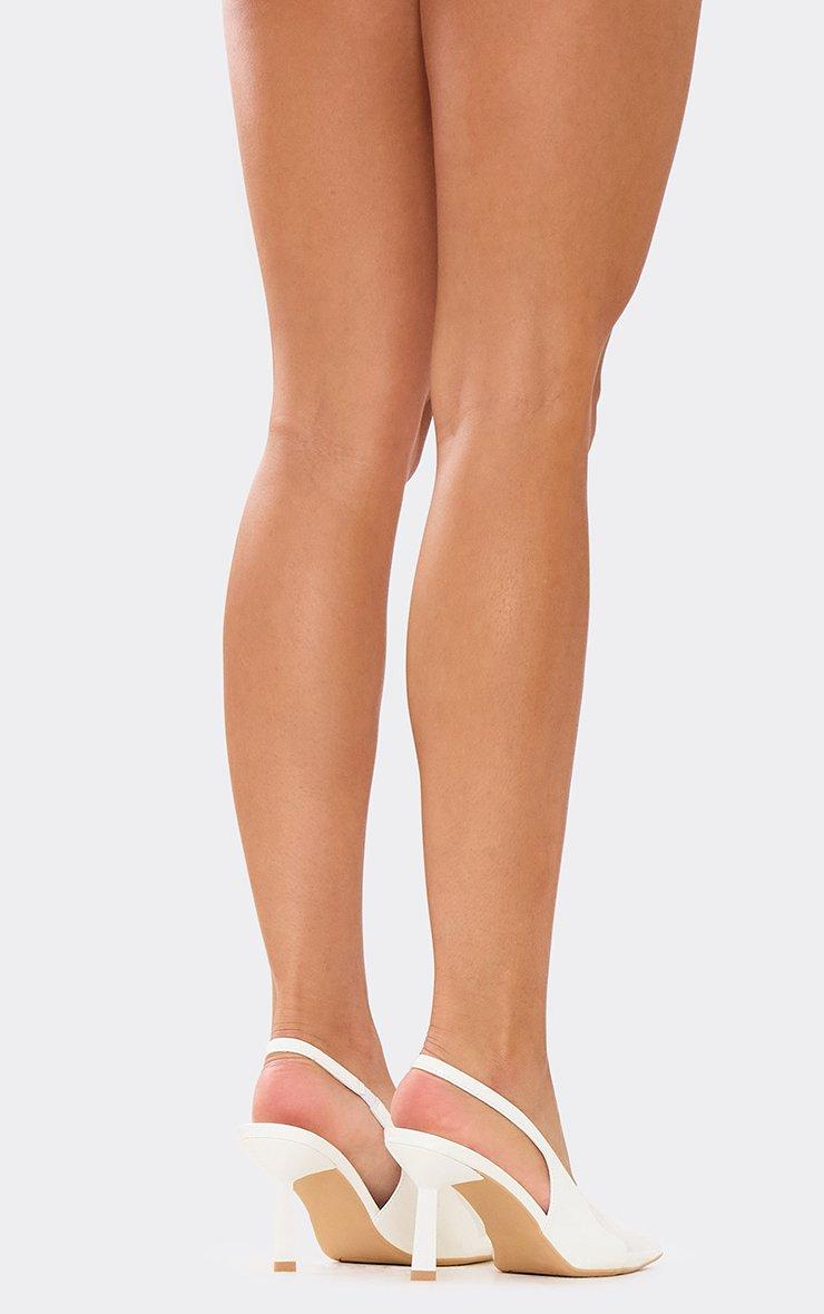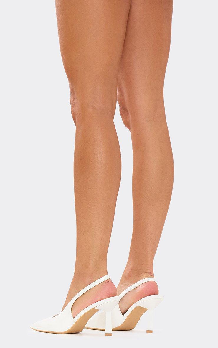 Felicity Pointed Toe Slingback Court Heel In White Faux Leather