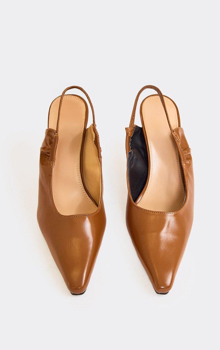Estella Pointed Peep Toe Heel Mule In Brown Patent