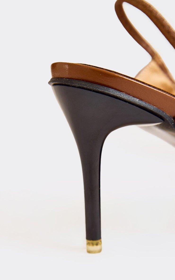 Mayline Diamante Detail Ankle Strap Heel In Brown Faux Leather