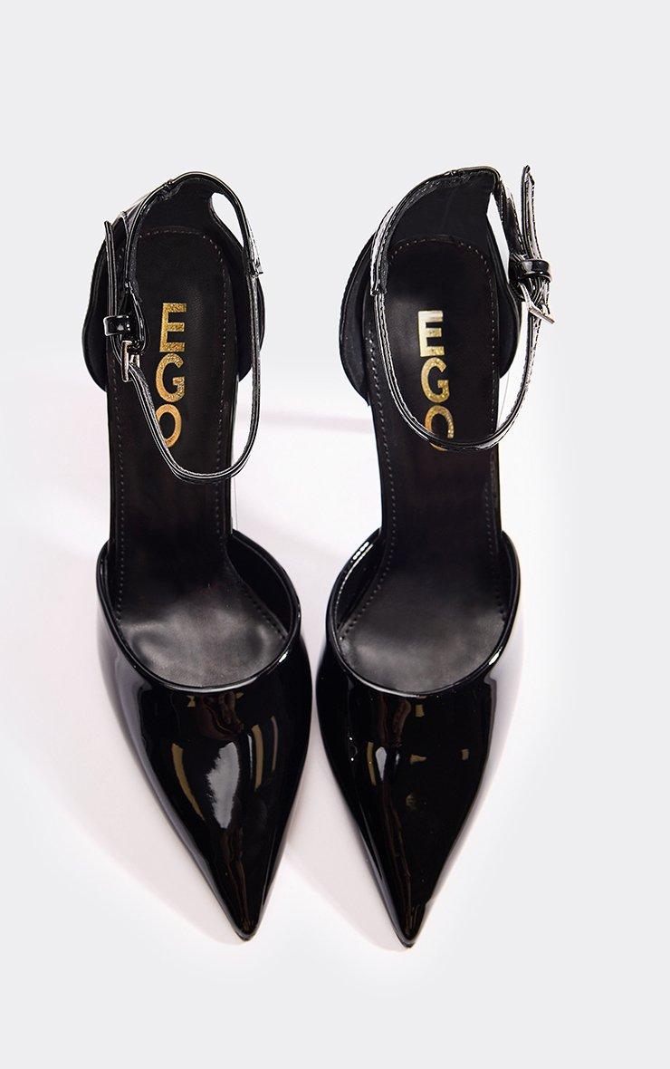 Weekly Ankle Strap Pointed Toe Stiletto Heel In Black Patent
