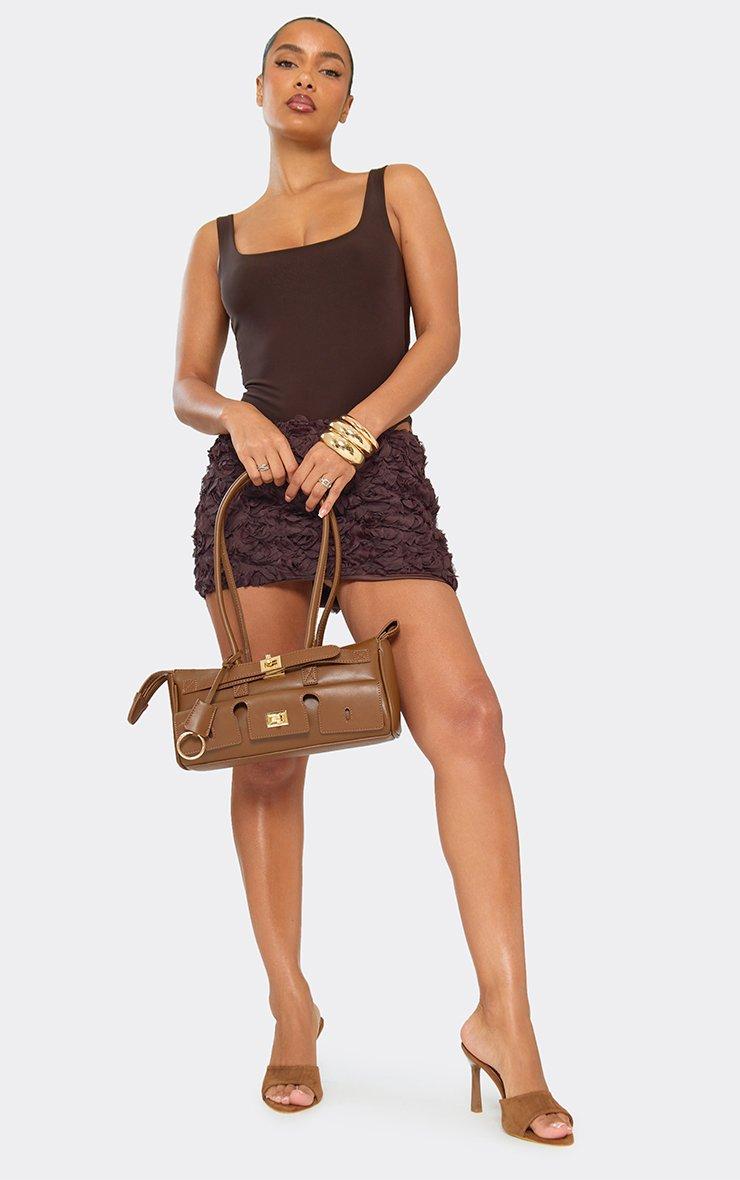 Ostara Faux Feather Thong Strap Heeled Mule In Taupe Faux Suede
