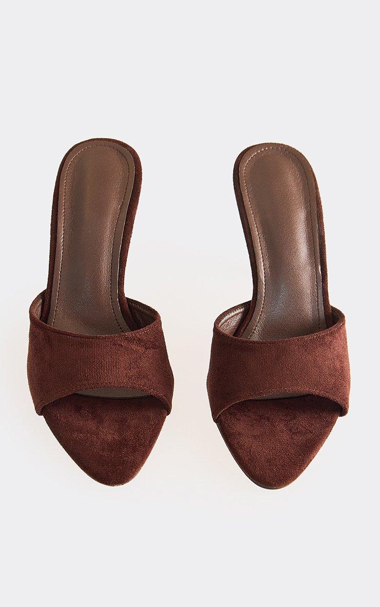Teamz Twist Strap Detail Heel In Brown Faux Suede