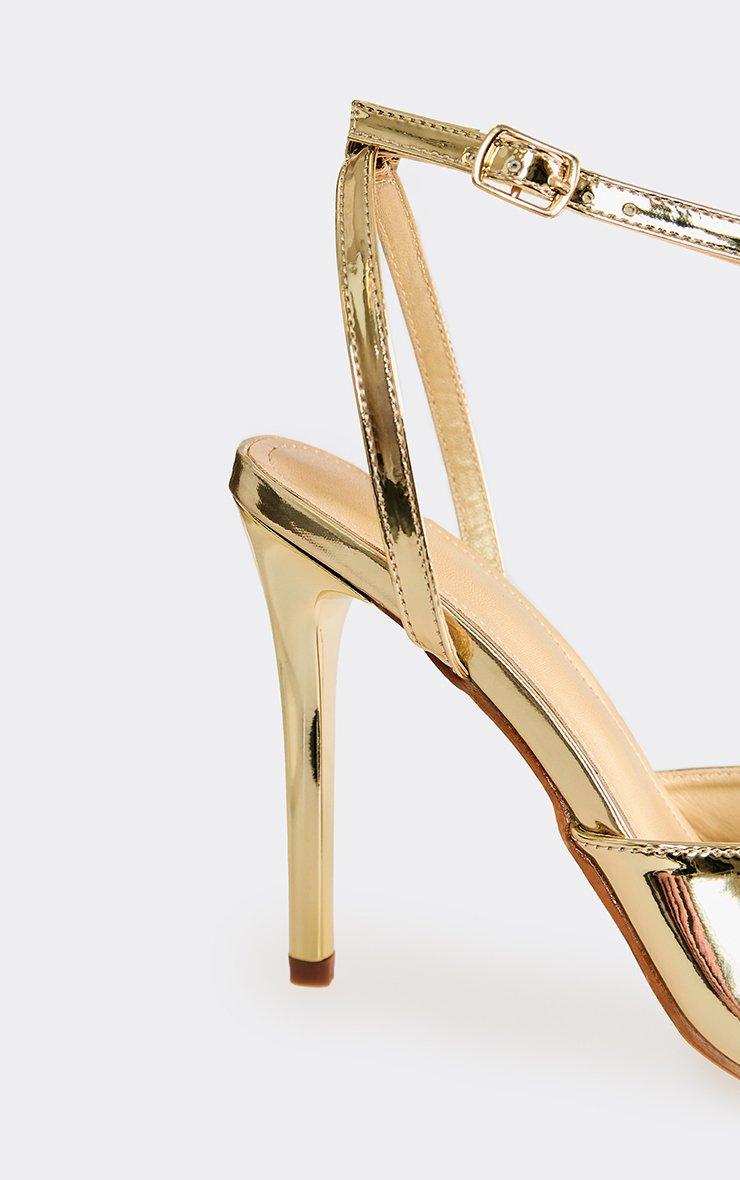 Icarus Buckle Detail Ankle Strap Stiletto Heel In Gold Faux Leather