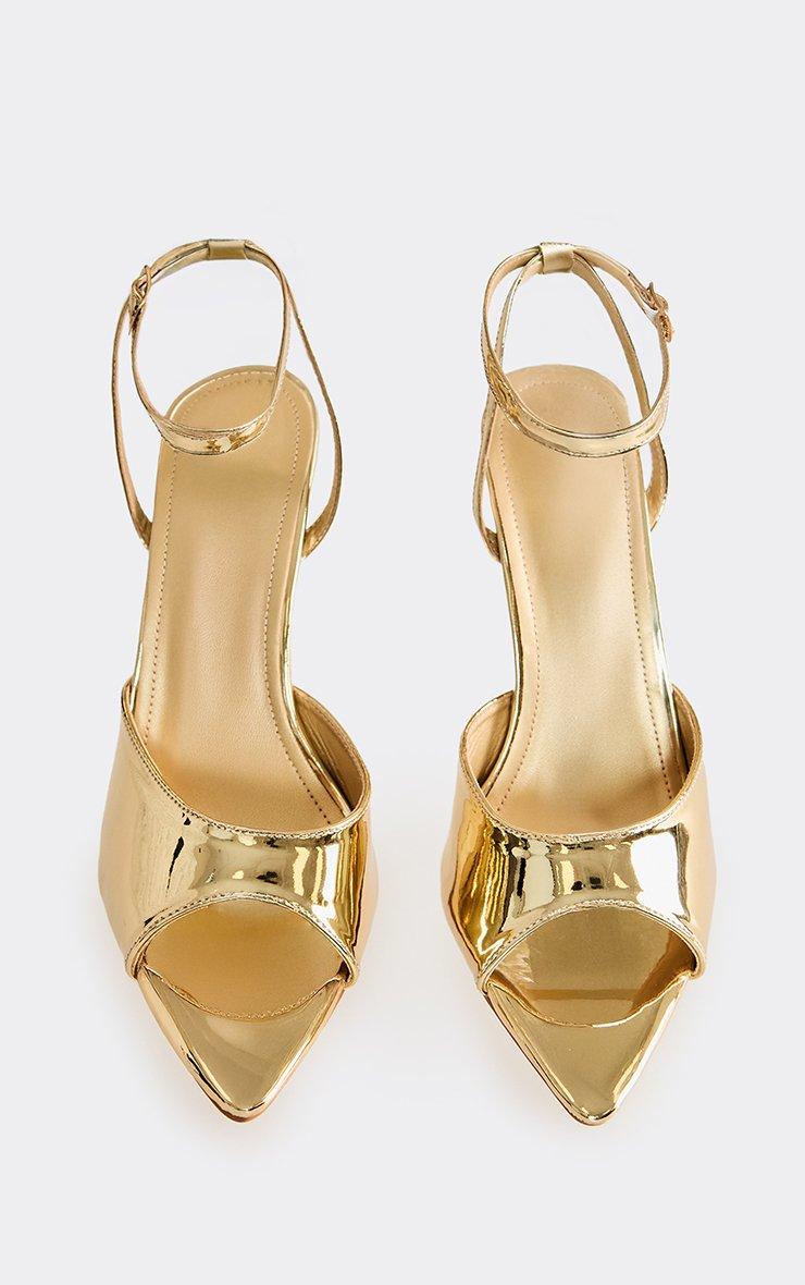 Hoopa Ankle Strap Stiletto Barely There Heel In Gold Faux Leather