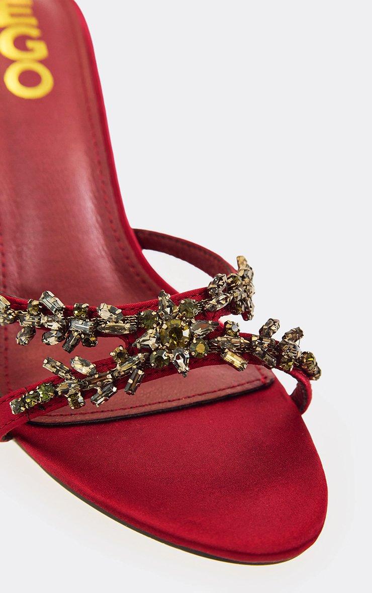 Second-Date Diamante Ankle Strap Stiletto Heel In Burgundy Faux Leather