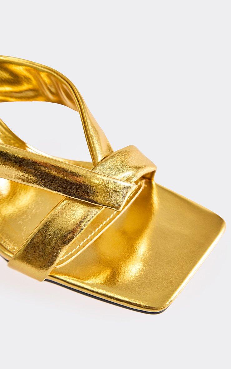 Eve Square Toe Strappy Heel In Gold Faux Leather