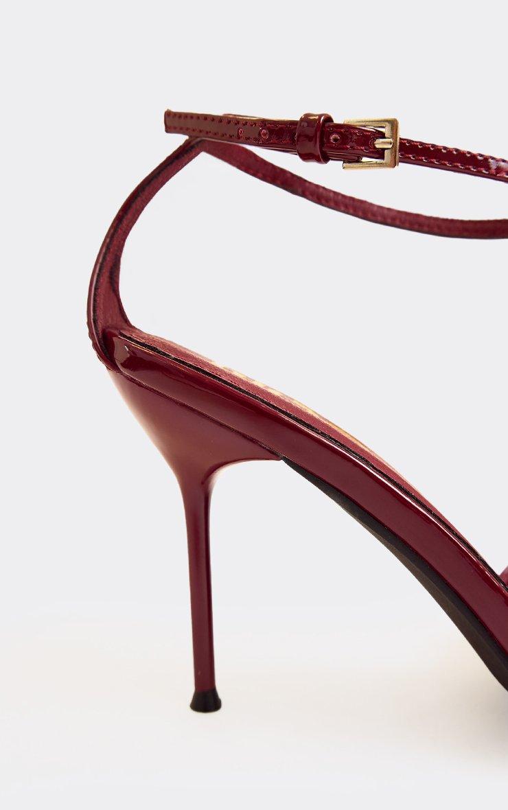 Second-Date Diamante Ankle Strap Stiletto Heel In Burgundy Faux Leather