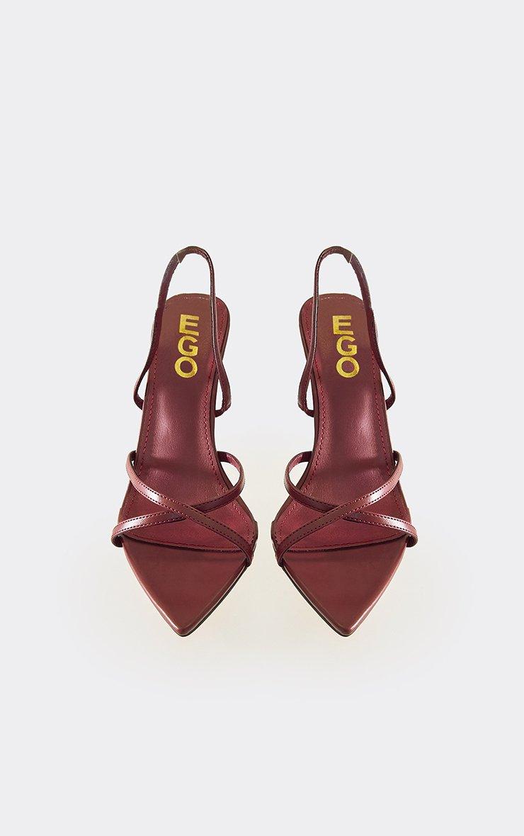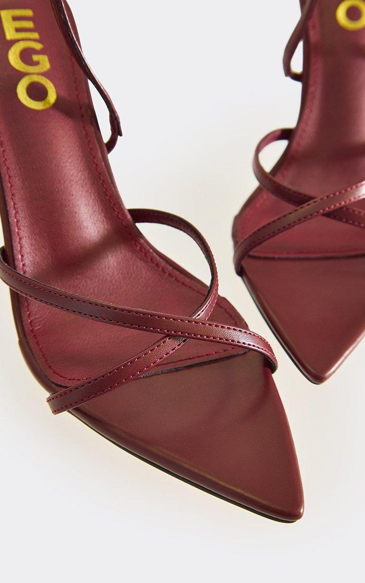 shift strappy detail pointed toe slingback stiletto heel in burgundy faux leather