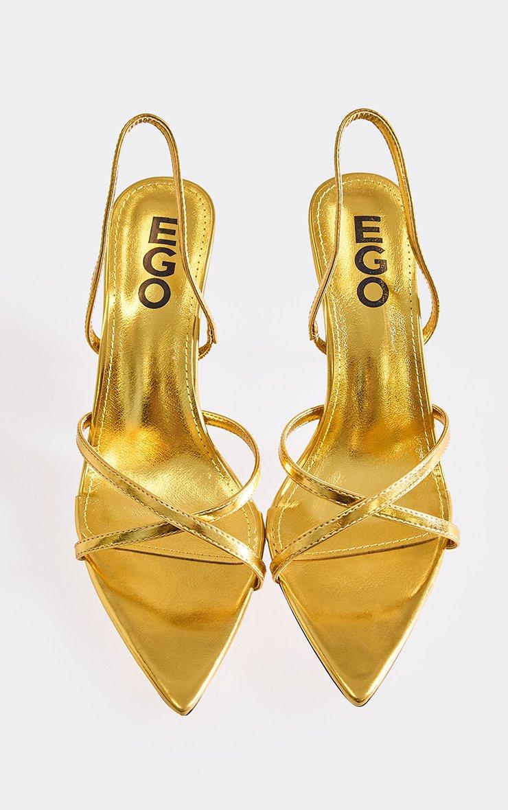 Shift Strappy Detail Pointed Toe Slingback Stiletto Heel In Gold Faux Leather
