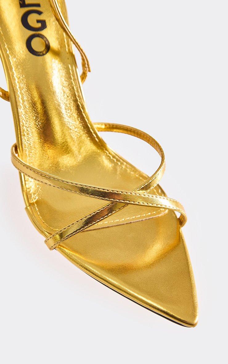 Hoopa Ankle Strap Stiletto Barely There Heel In Gold Faux Leather