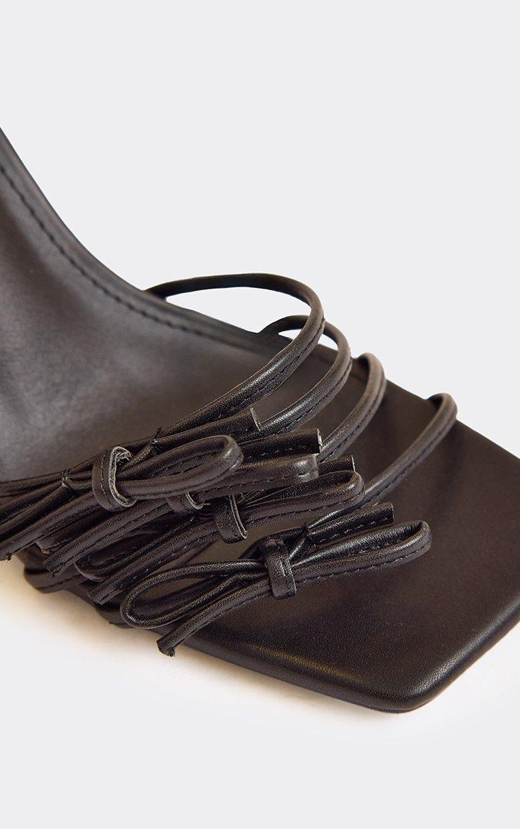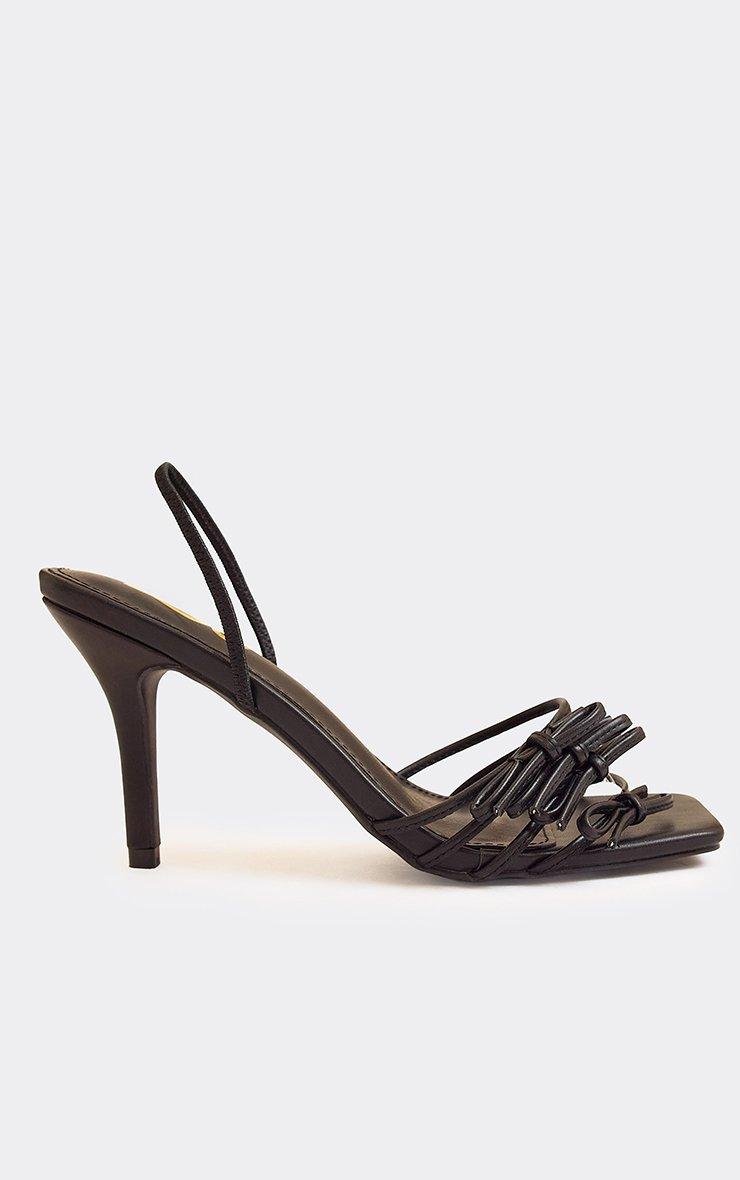 Eve Square Toe Strappy Heel In Black Faux Leather