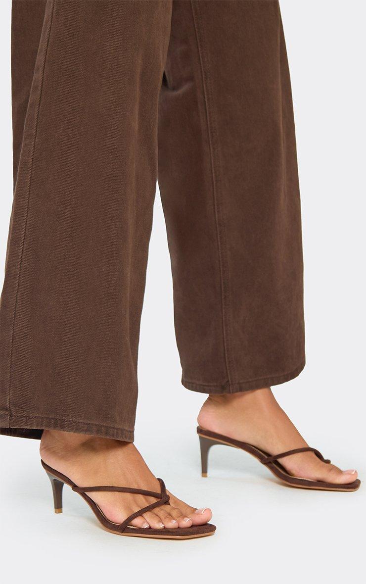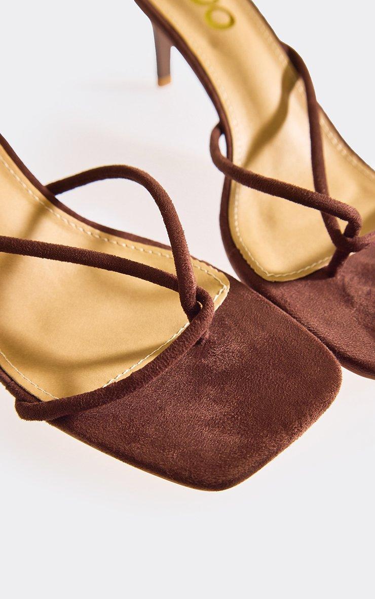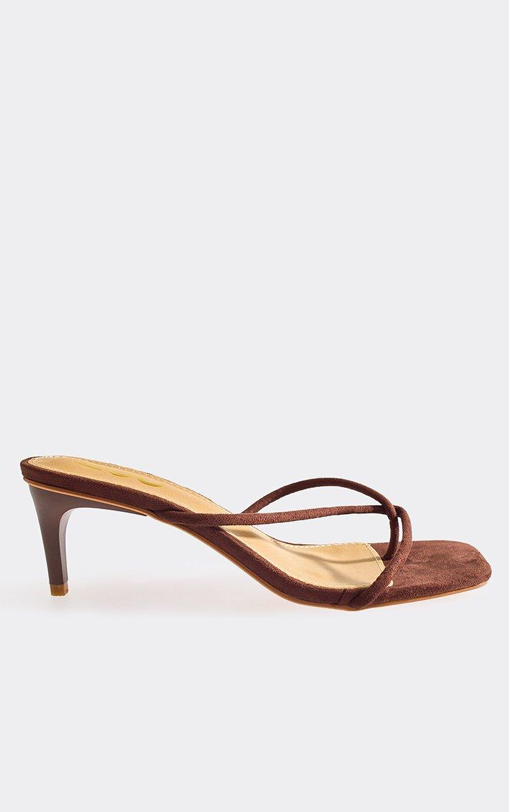 Teamz Twist Strap Detail Heel In Brown Faux Suede