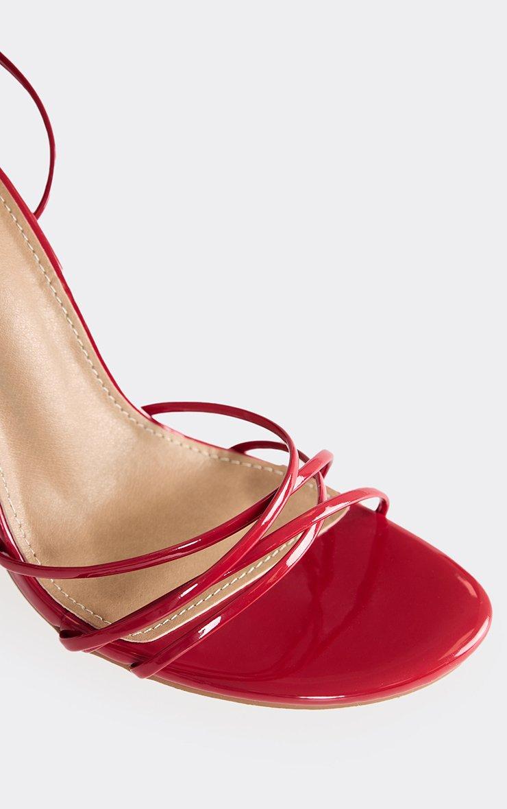 Truely Ankle Strap Pointed Peep Toe Stiletto Heel In Red Satin