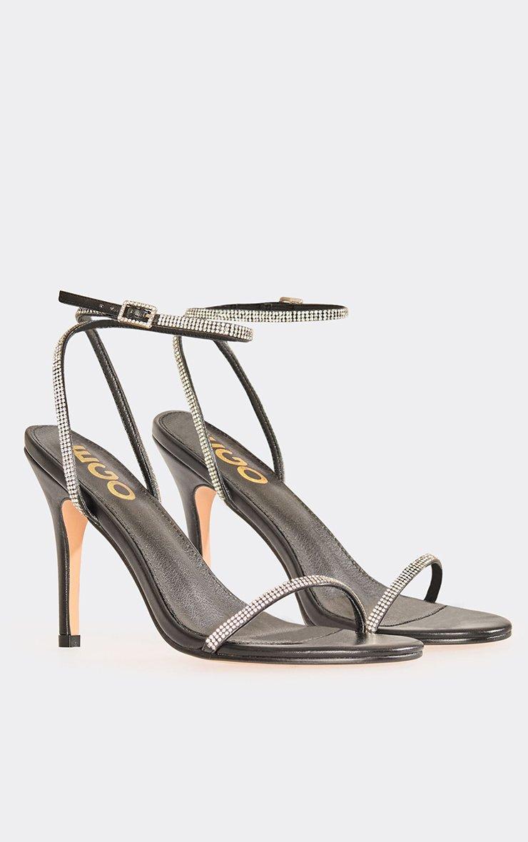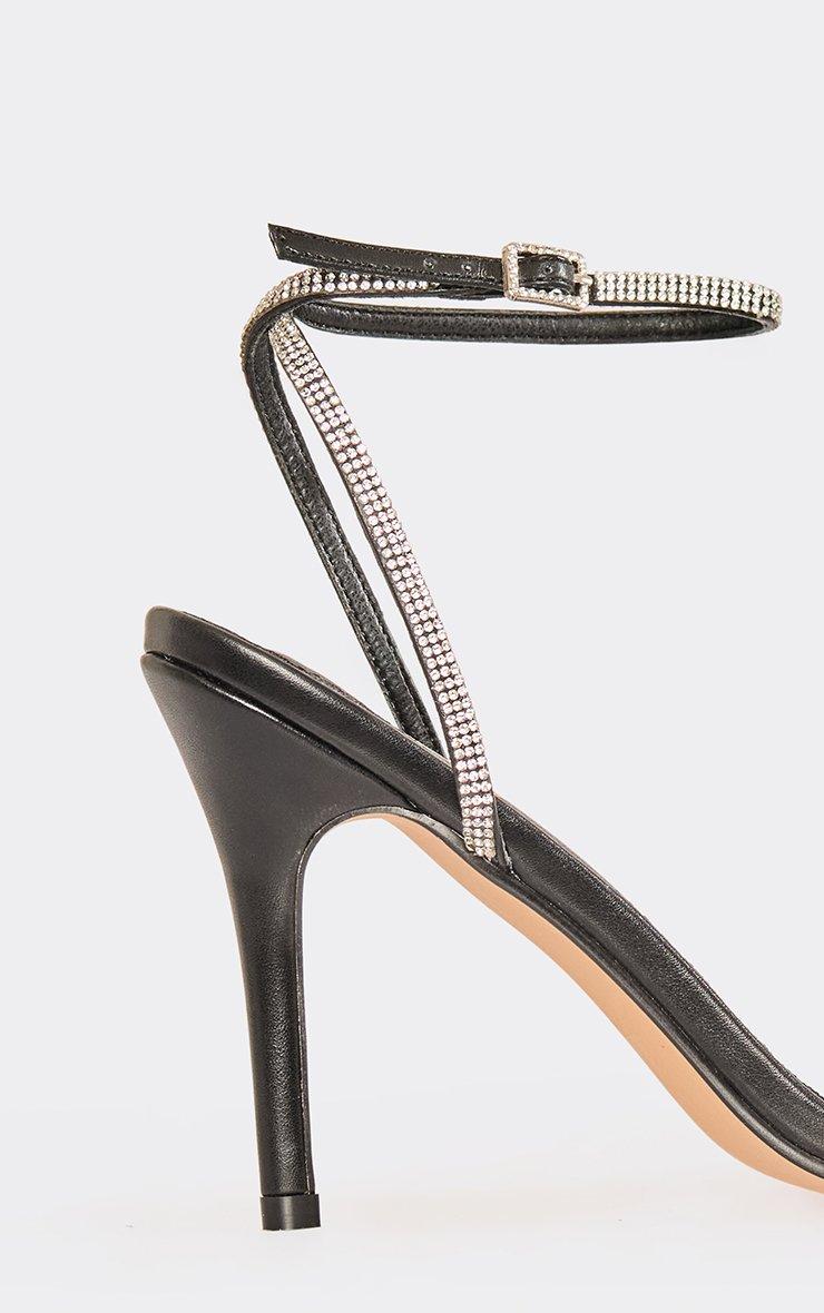 Mayline Diamante Detail Ankle Strap Heel In Black Faux Leather