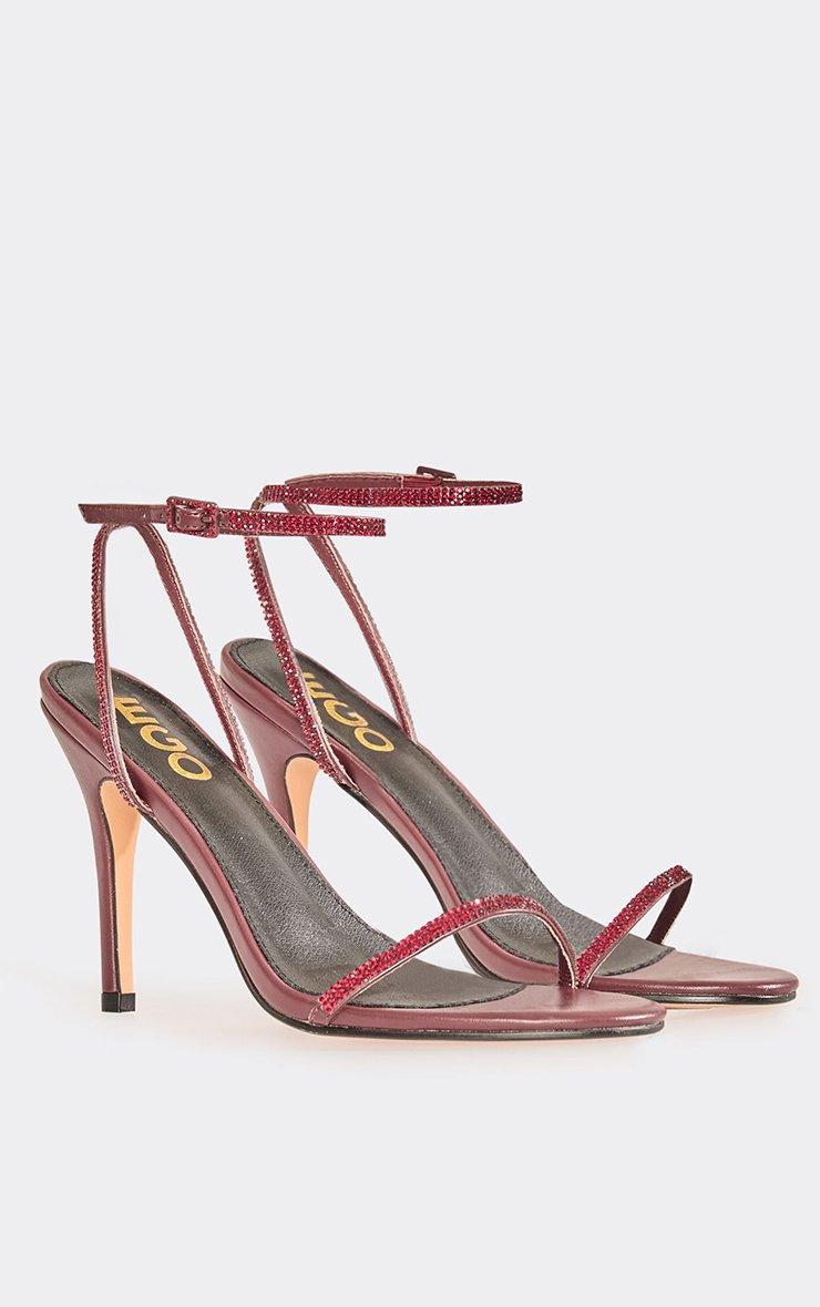 Treme Embellished Cross Strap Detail Heel In Burgundy Satin