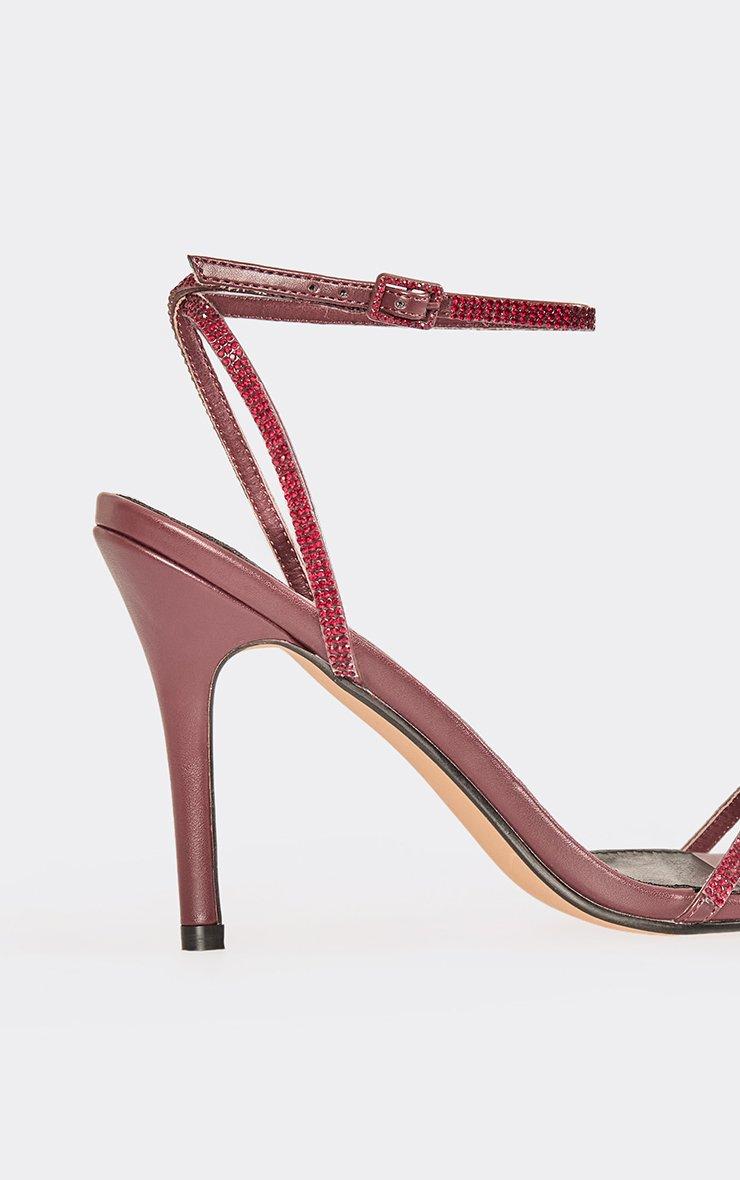 Resort-Town Floral Strappy Detail Stiletto Heel In Burgundy Faux Leather