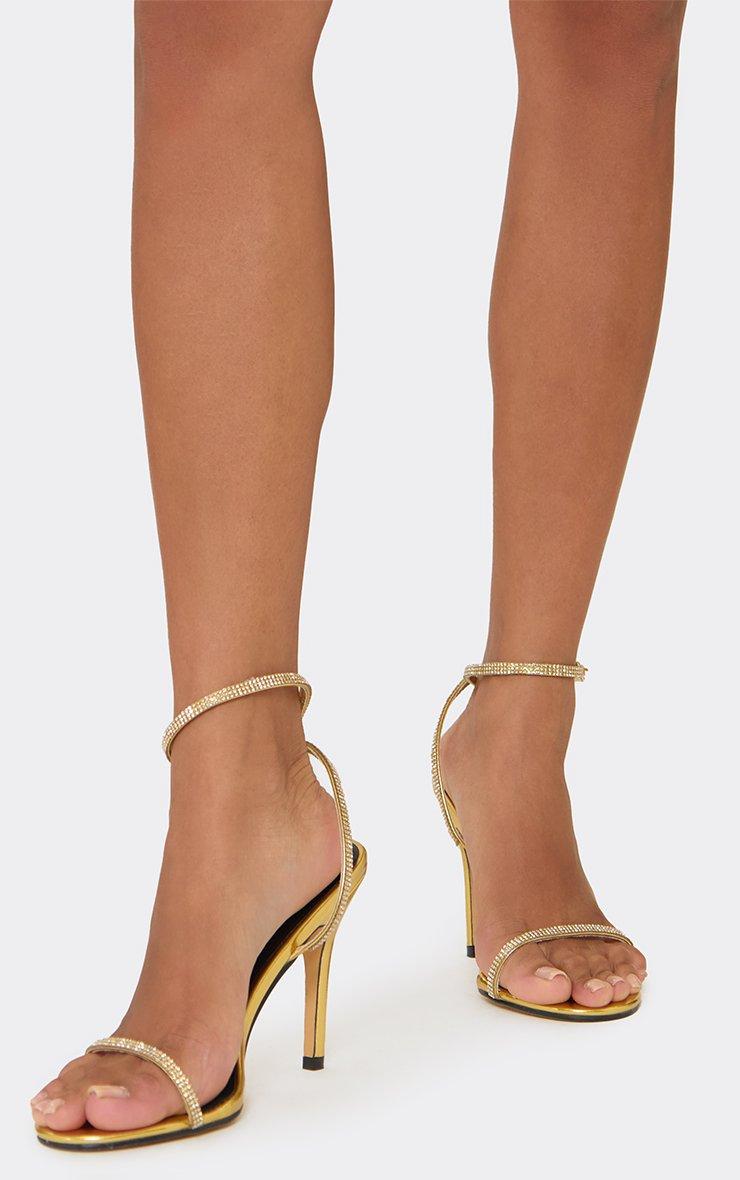 second-date diamante ankle strap stiletto heel in gold faux leather