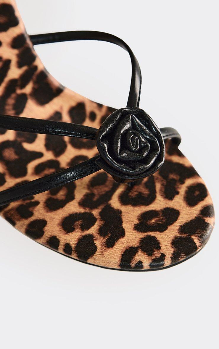 rosebud contrast flower detail wrap up stiletto heel in leopard print faux leather