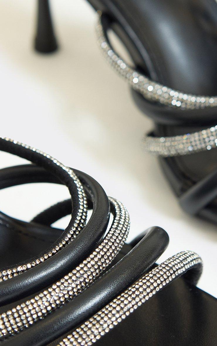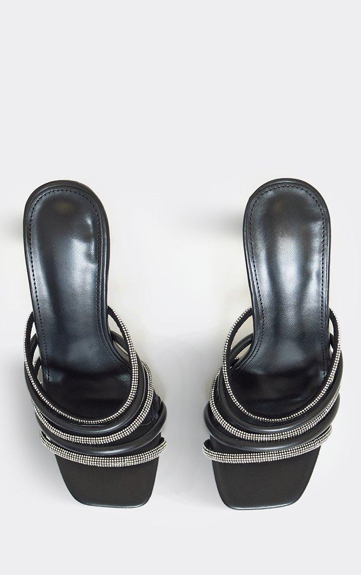 Sicke Diamante Strappy Detail Heel Mule In Black Faux Leather