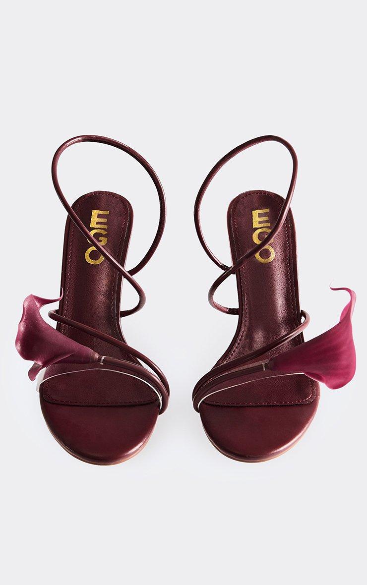 Resort-Town Floral Strappy Detail Stiletto Heel In Burgundy Faux Leather