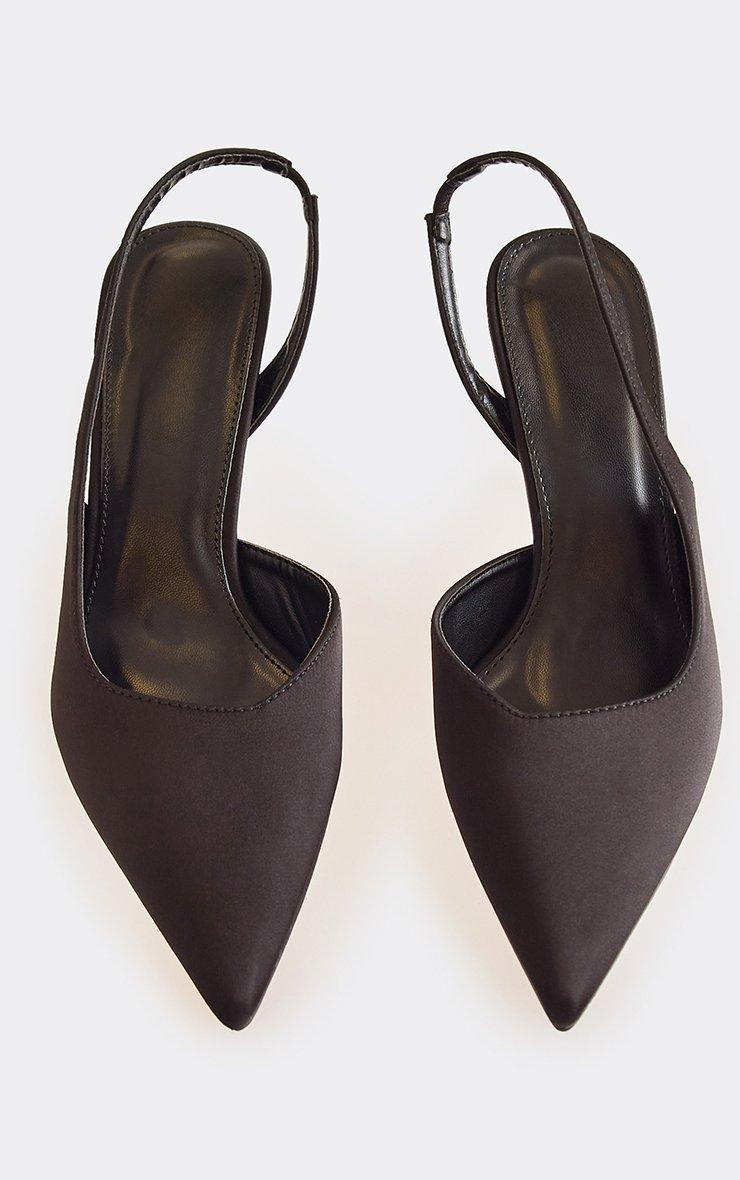 Sharing Pointed Toe Slingback Court Heel In Black Satin