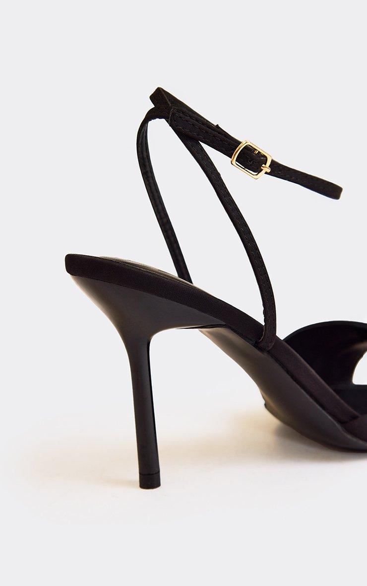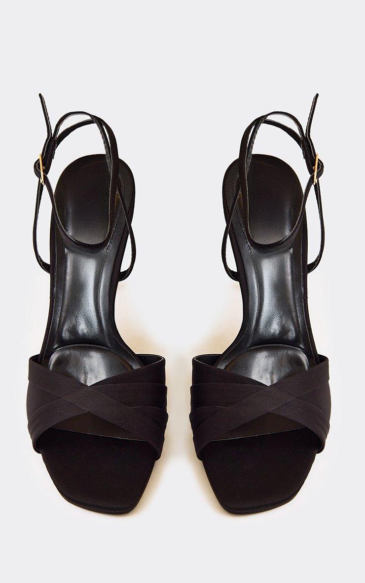 Bestie Square Peep Toe Cross Strap Stiletto Heel In Black Satin