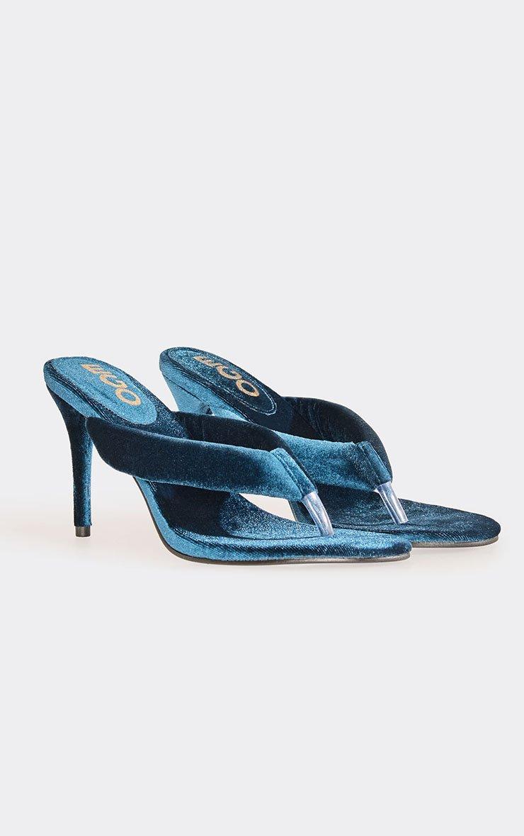 Lavished Padded Thong Strap Heeled Mule In Red Velvet