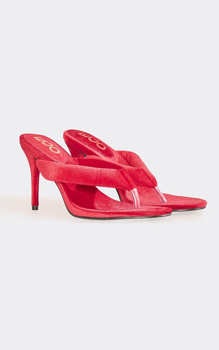 Loveless Strappy Lace Up Stiletto Heel In Red Faux Leather
