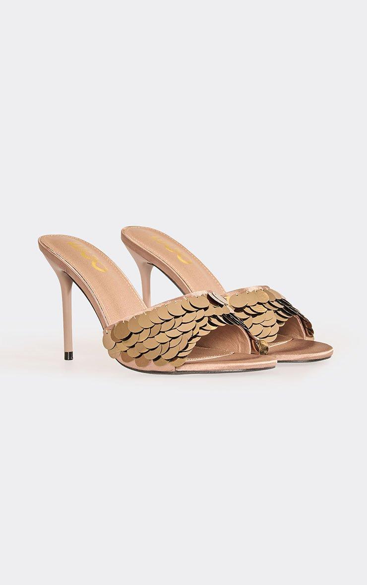 Violet-Game Strappy Detail Square Toe Heel In Gold Faux Leather