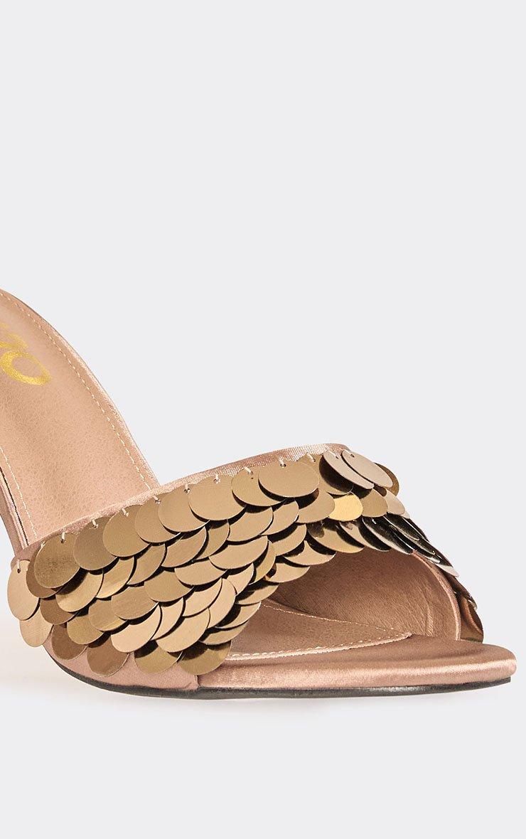 Second-Date Diamante Ankle Strap Stiletto Heel In Gold Faux Leather