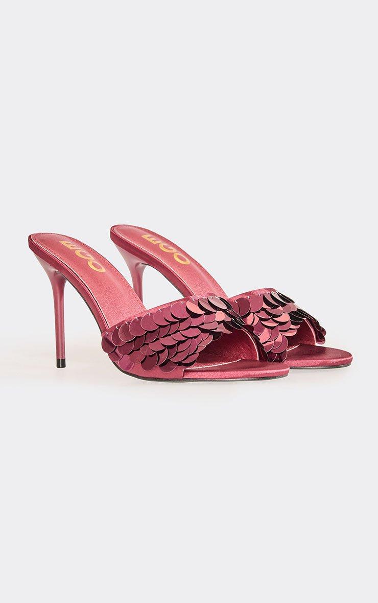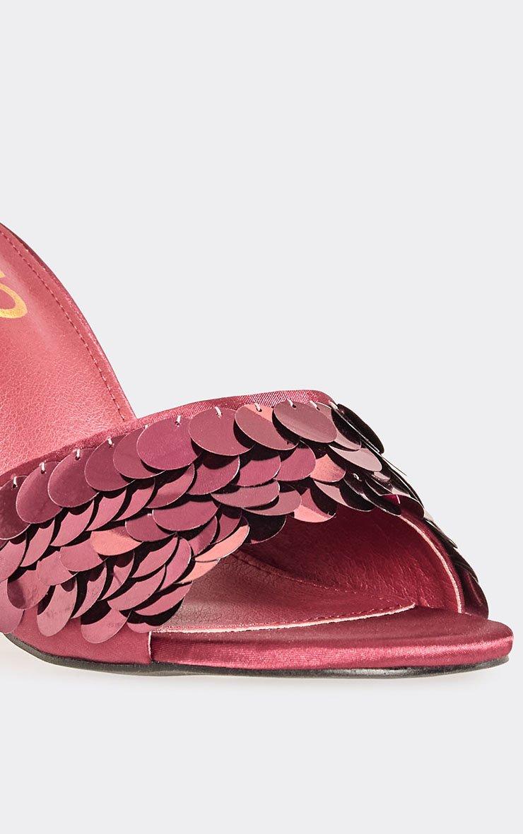 Treme Embellished Cross Strap Detail Heel In Burgundy Satin