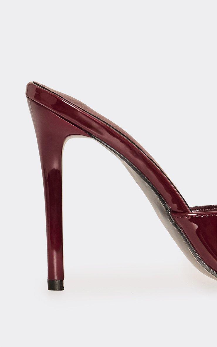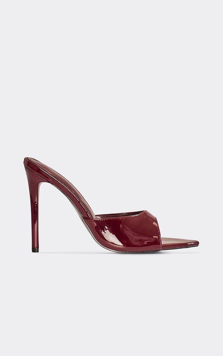 Violet-Game Strappy Detail Square Toe Heel In Burgundy Faux Leather