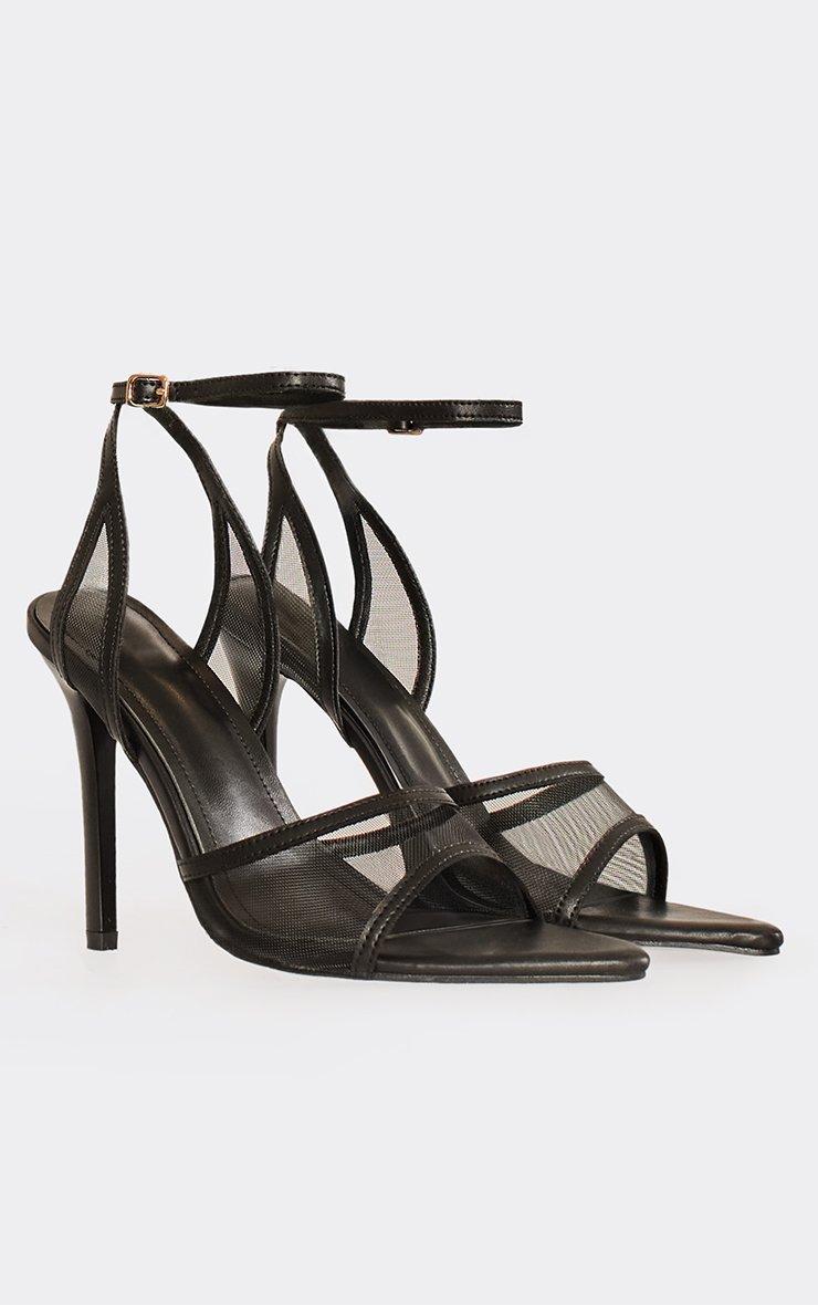future ankle strap mesh insert pointed peep toe stiletto heel in black faux leather