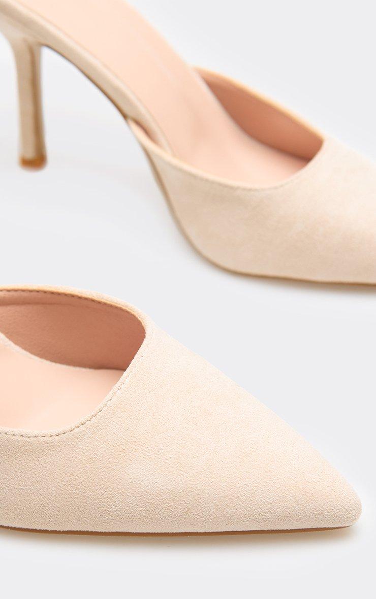 Elodie Pointed Toe Heel Mule In Beige Faux Suede