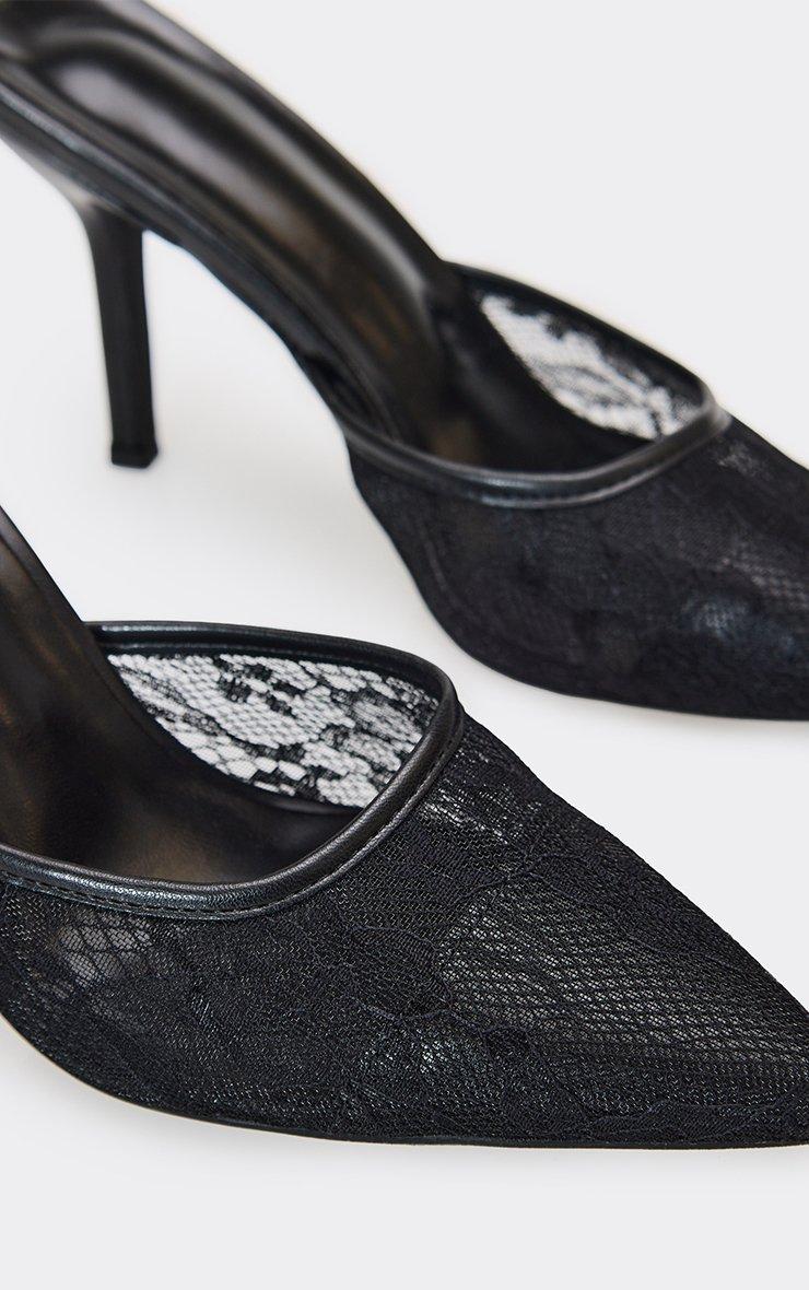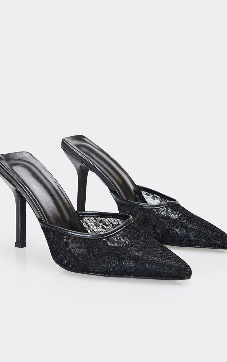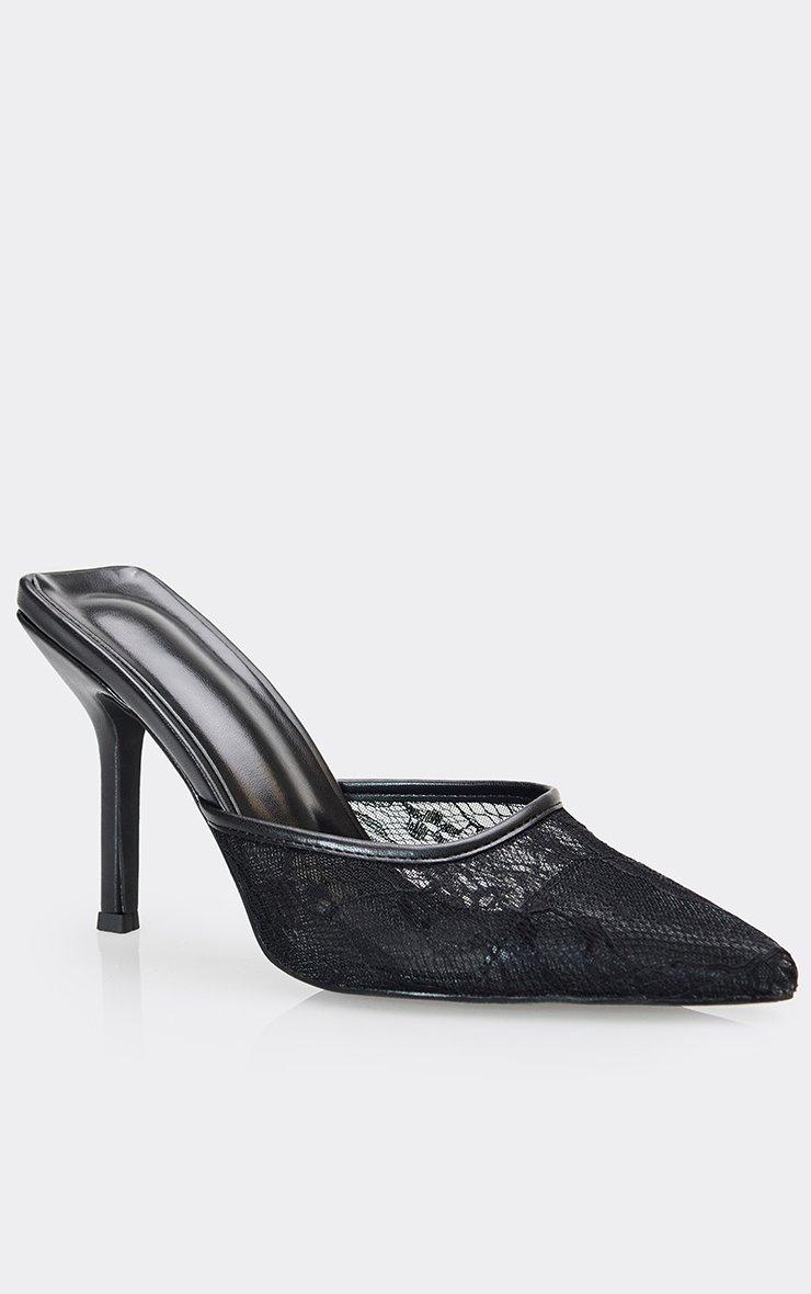 Manon Pointed Lace Toe Heel Mule In Black Faux Leather