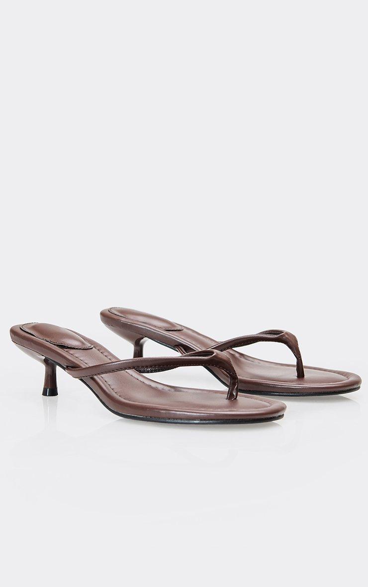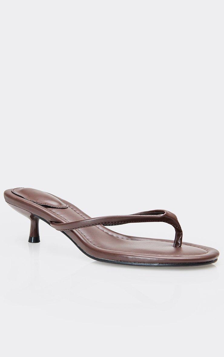 Vinny Thong Strap Kitten Heel Mule In Brown Faux Leather