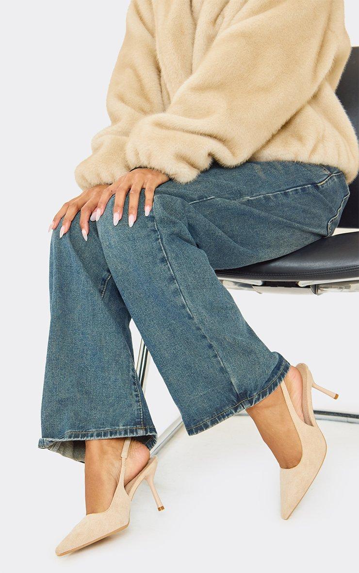 Timely Pointed Toe Heeled Mule In Sand Faux Suede