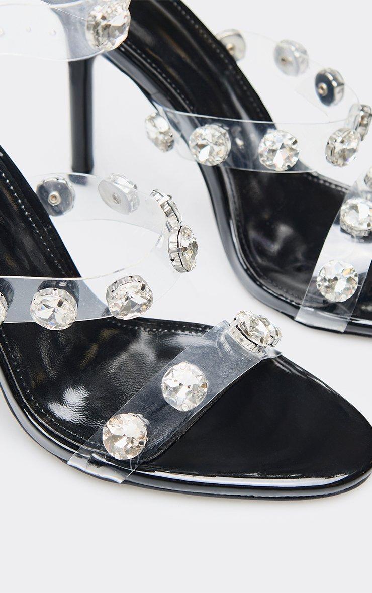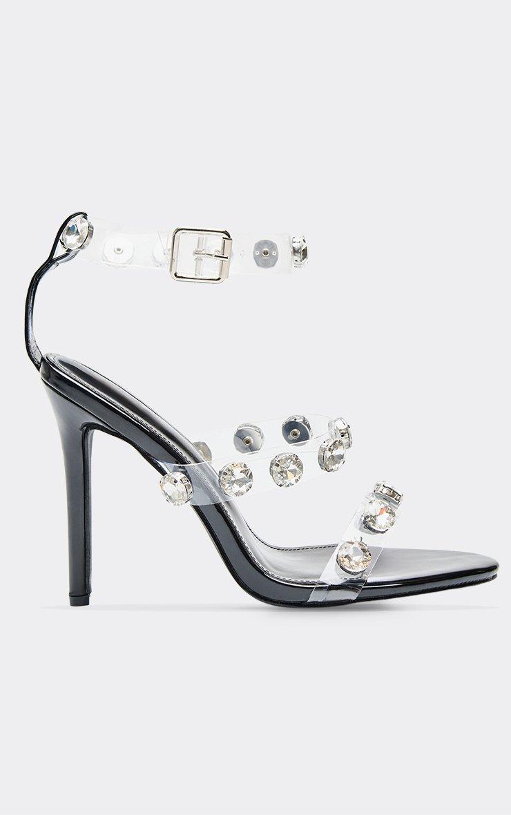 lotty gem detail clear perspex strap stiletto heel in black patent