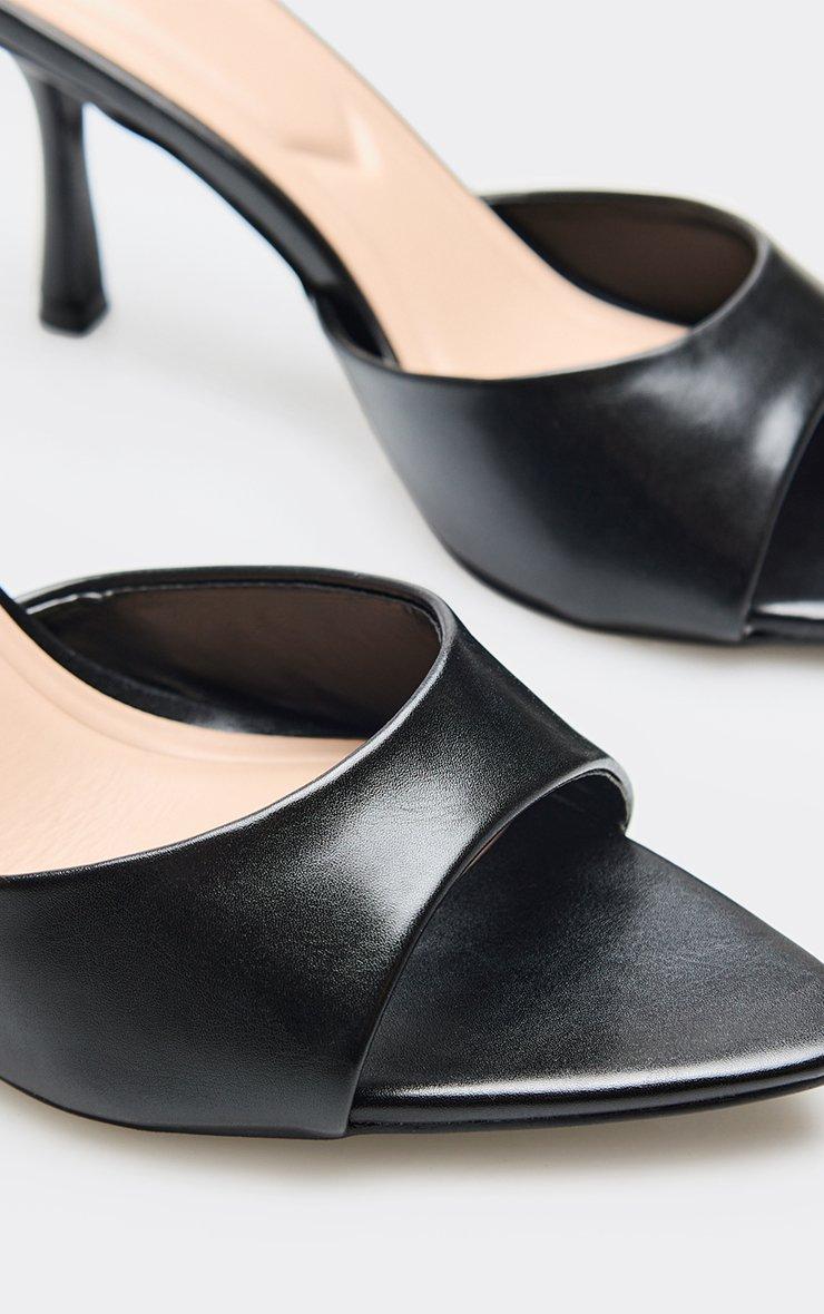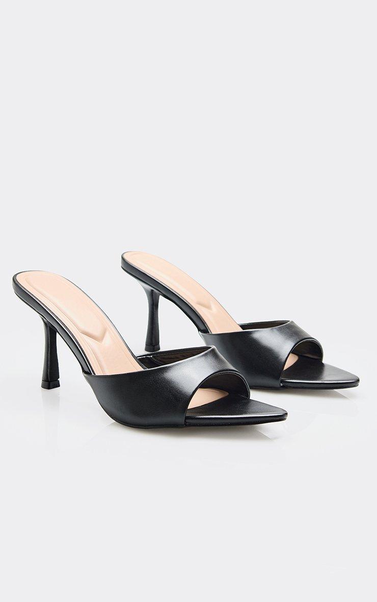 Marlyn Peep Toe Heel Mule In Black Faux Leather